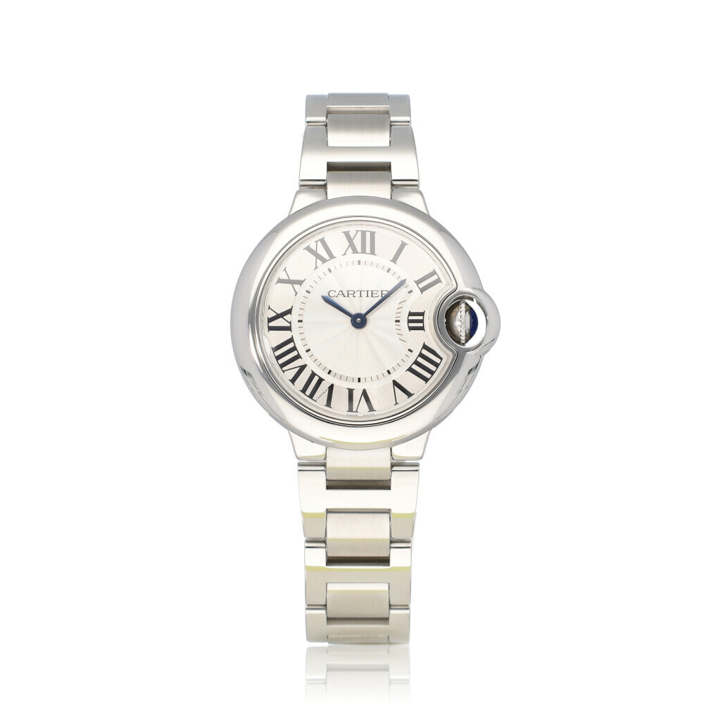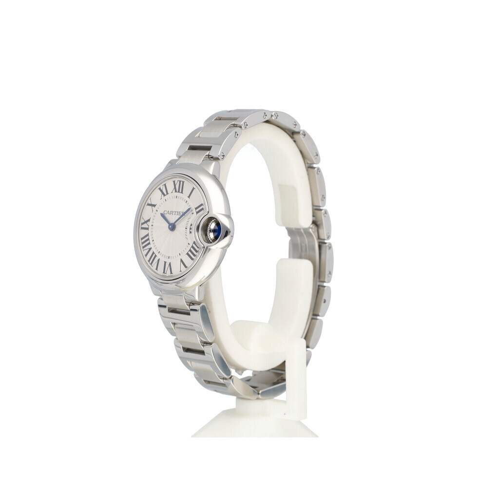 In very good condition Cartier Ballon Bleu De Cartier in 33mm steel with silver dial and steel Cartier bracelet from 2014 complete with box and papers.