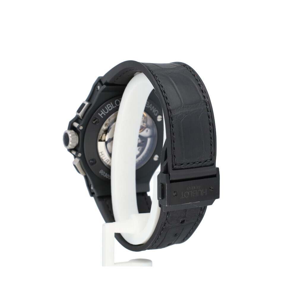 In very good condition Hublot Big Bang Aero Bang Chronograph Black Magic in ceramic with skeleton dial. No box and/or papers