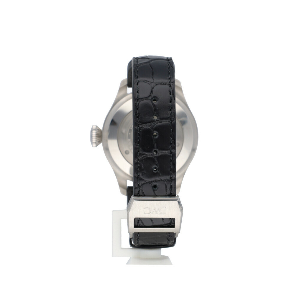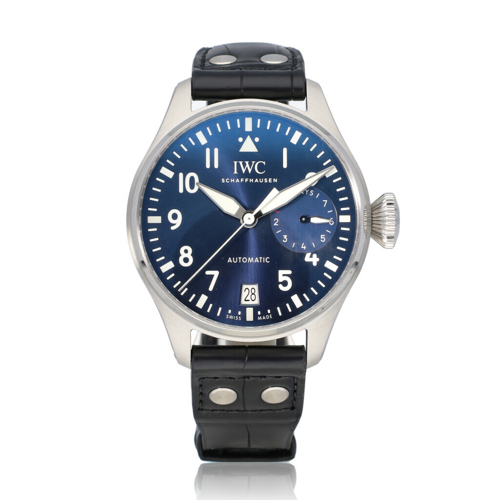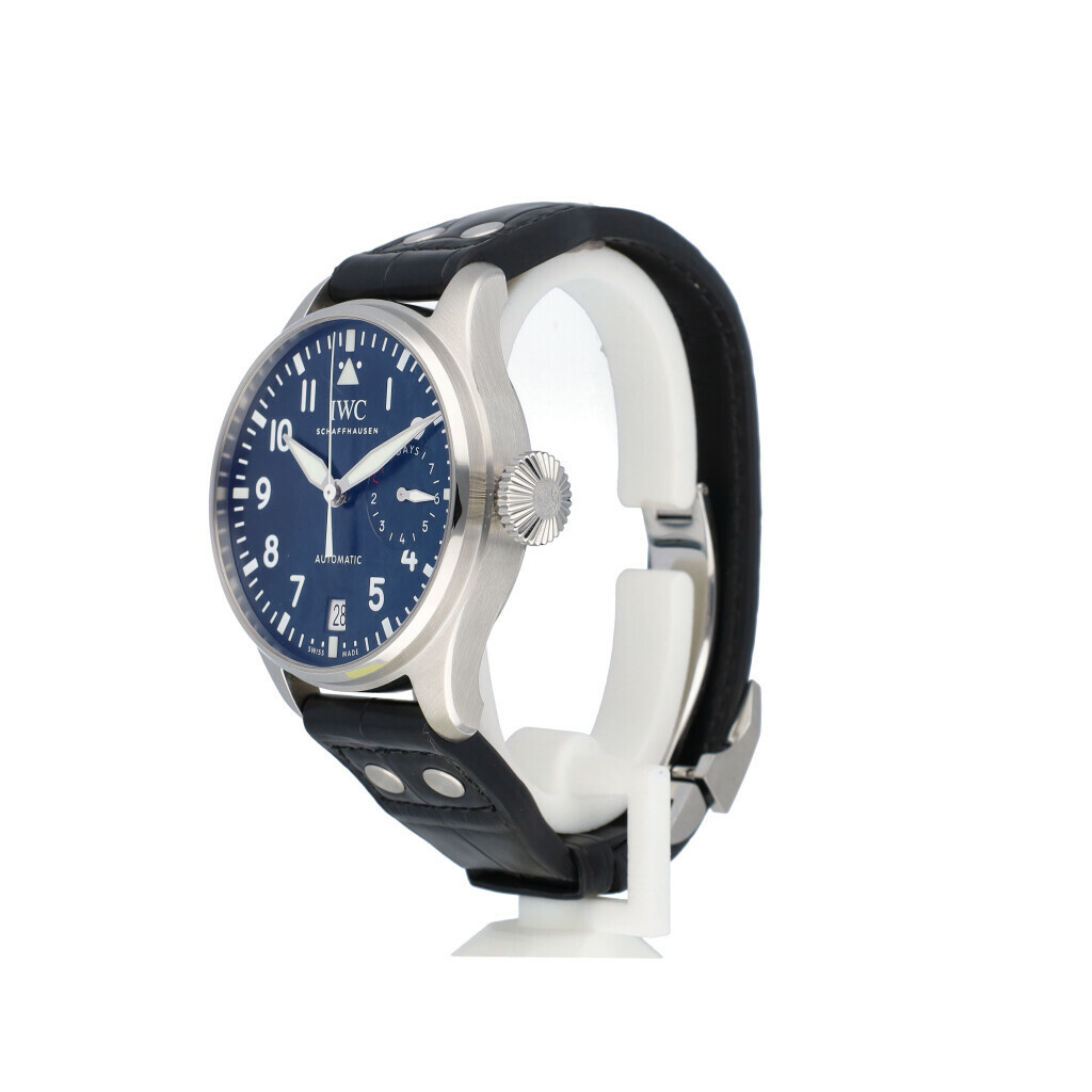 In very good condition, IWC Big Pilot Le Petit Prince with blue dial and leather strap from 2017 complete with box and papers.