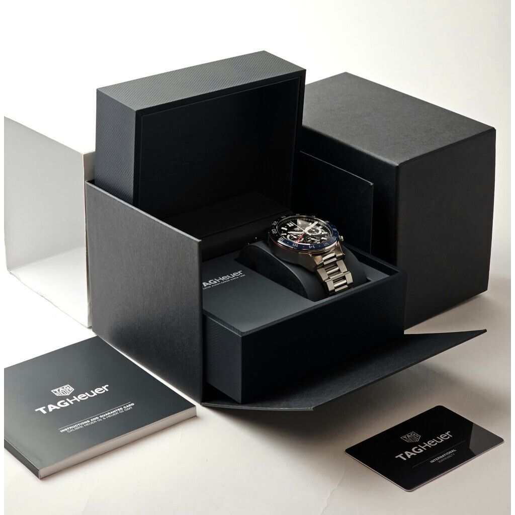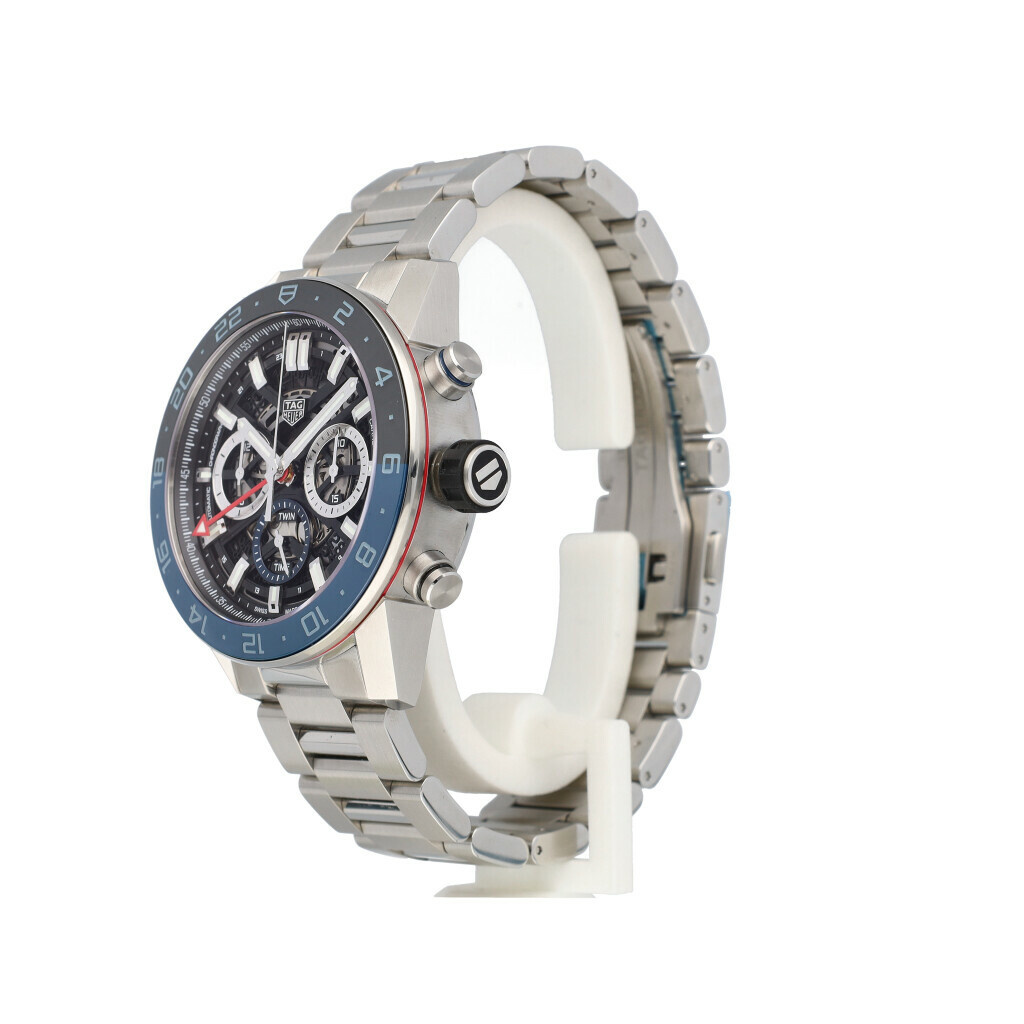 In very good condtion Tag Heuer Carrera Calibre Heuer 02 Chronograph in steel with skeleton dial and steel bracelet from 2026 complete with box and papers. 21% VAT deductible when shipped outside of the European Union.
