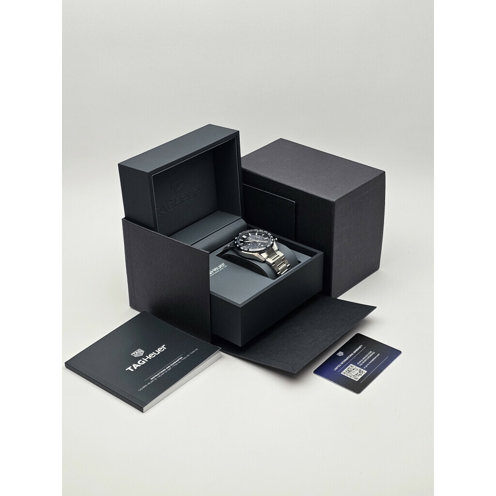 In very good condition Tag Heuer Carrera in steel with blue dial and steel bracelet from 2025 complete with box and papers. 21% VAT deductible when shipped outside of the European Union.