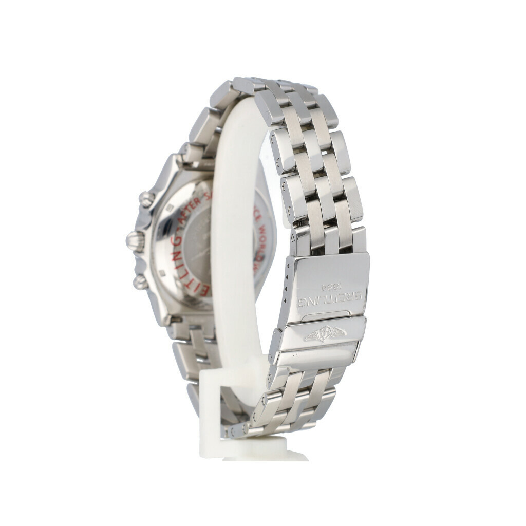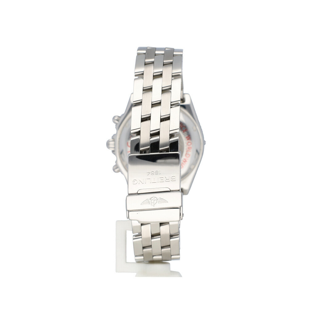 In very good condition Breitling Chronomat P.A.N Frecce Tricolori in steel with black dial from 1999 complete with box and papers. Limited edition of 4.000 pieces worldwide. Breitling serviced 1-2025 for € 1.358,50 and not worn since. Breitling service papers included.