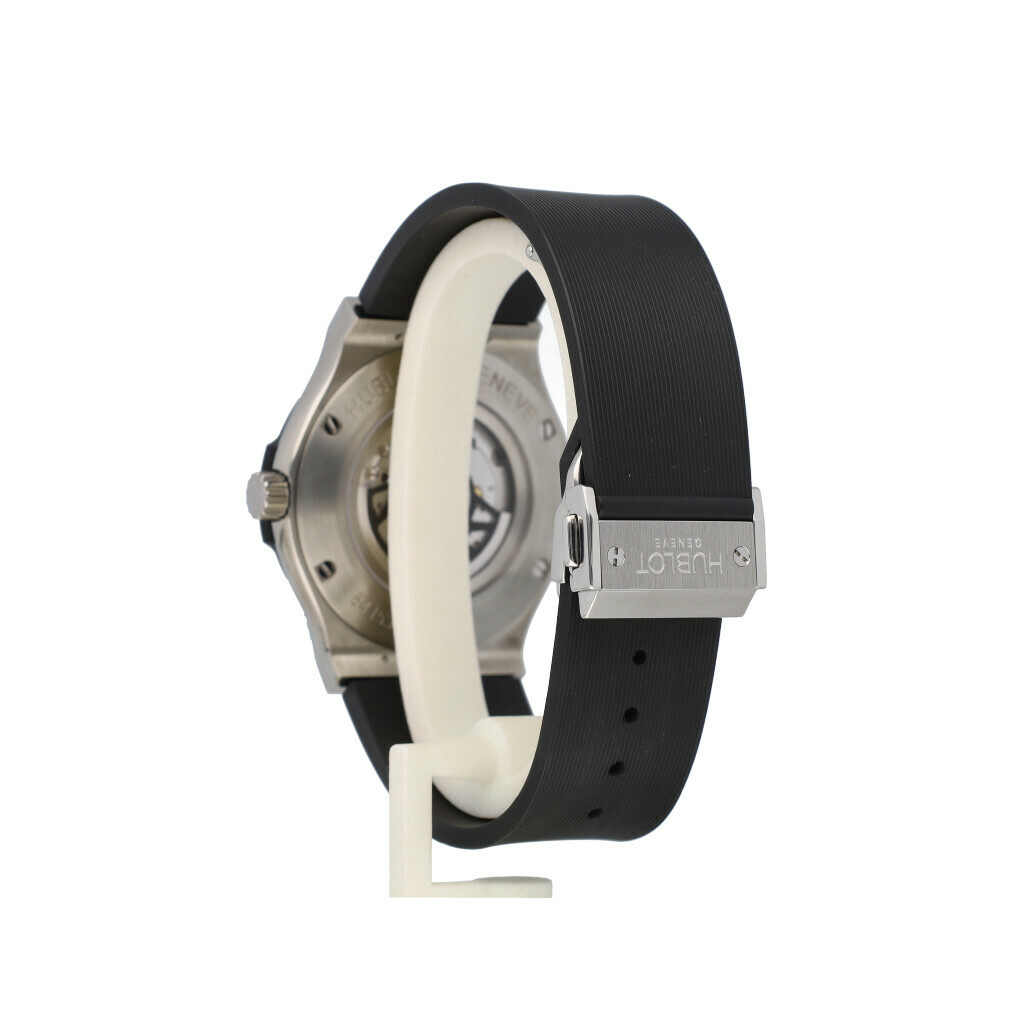In very good condition Hublot Classic Fusion in steel with black dial, steel bezel and rubber strap from 2014 complete with box and papers.