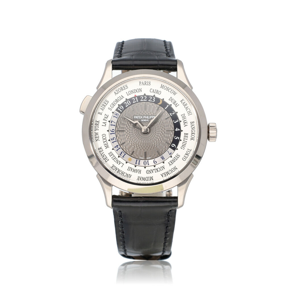 In very good condition Patek Philippe Complications World Time in white gold from 2022 complete with box and papers.