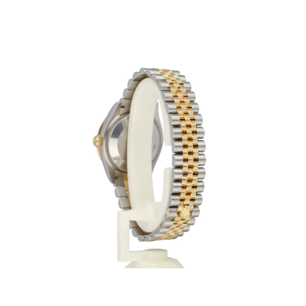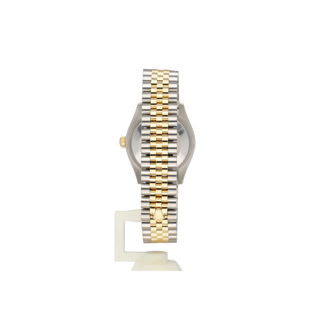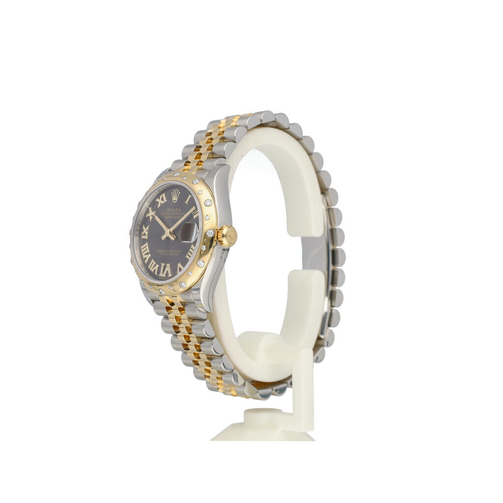 In very good condition Rolex Datejust 31 in steel and yellow gold with factory diamond bezel and dark grey roman diamond dial and Jubilee bracelet from 2021 complete with box and papers.