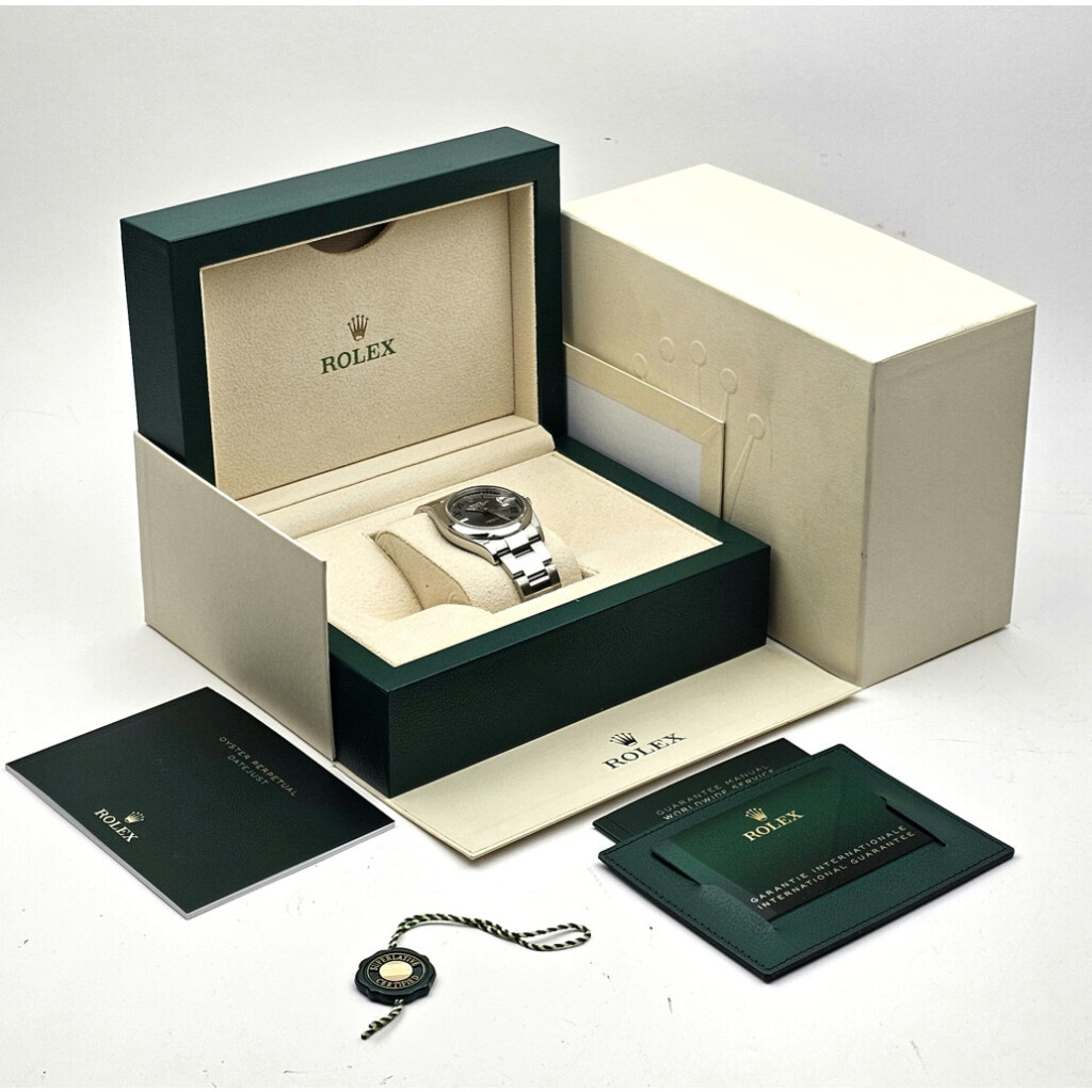 In very good condition Rolex Datejust 36 in steel with Wimbledon dial, steel domed bezel and steel Oyster bracelet from 2024 complete with box and papers.