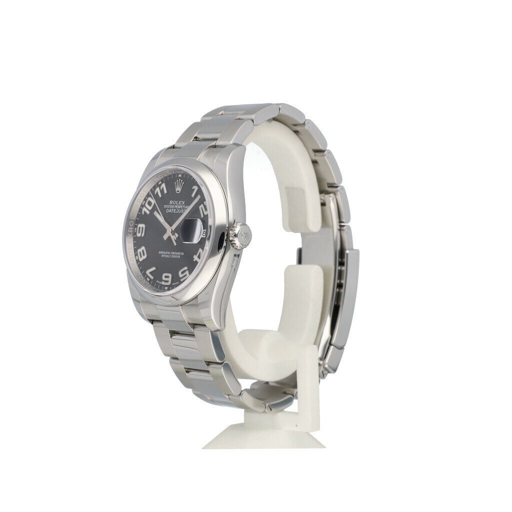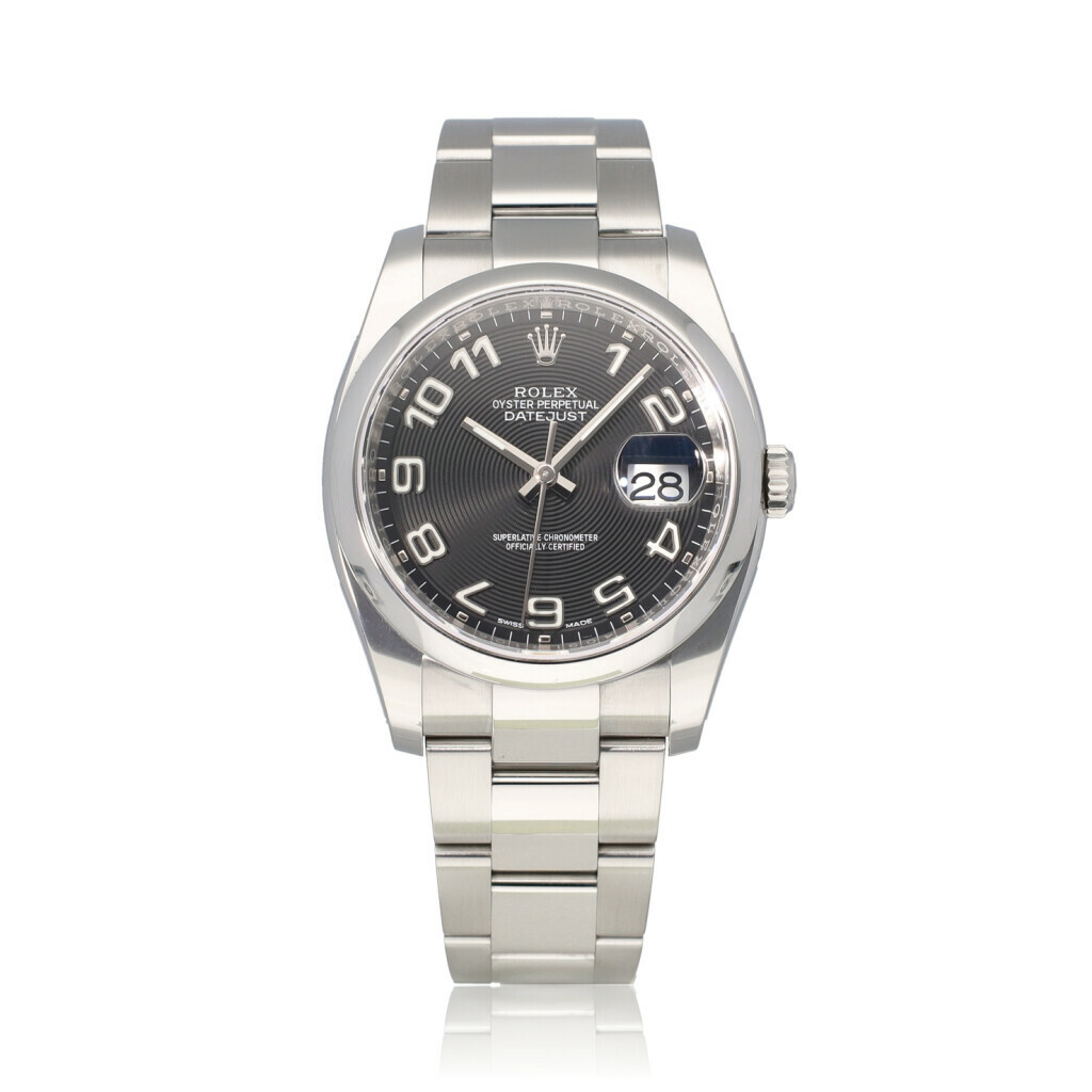 In very good condition Rolex Datejust 36 in steel with black concentric arabic dial, steel domed bezel and steel Oyster bracelet from 2020 complete with box and papers.