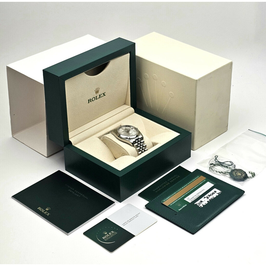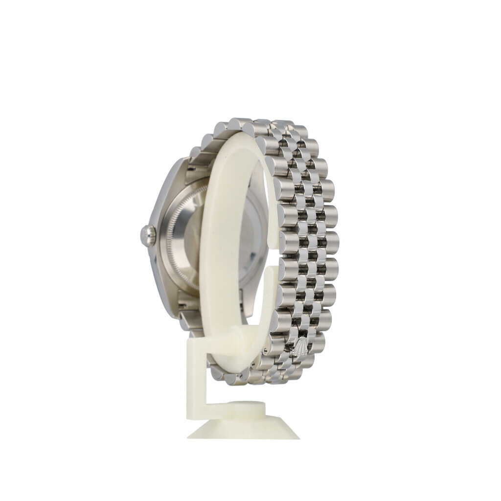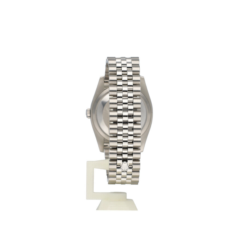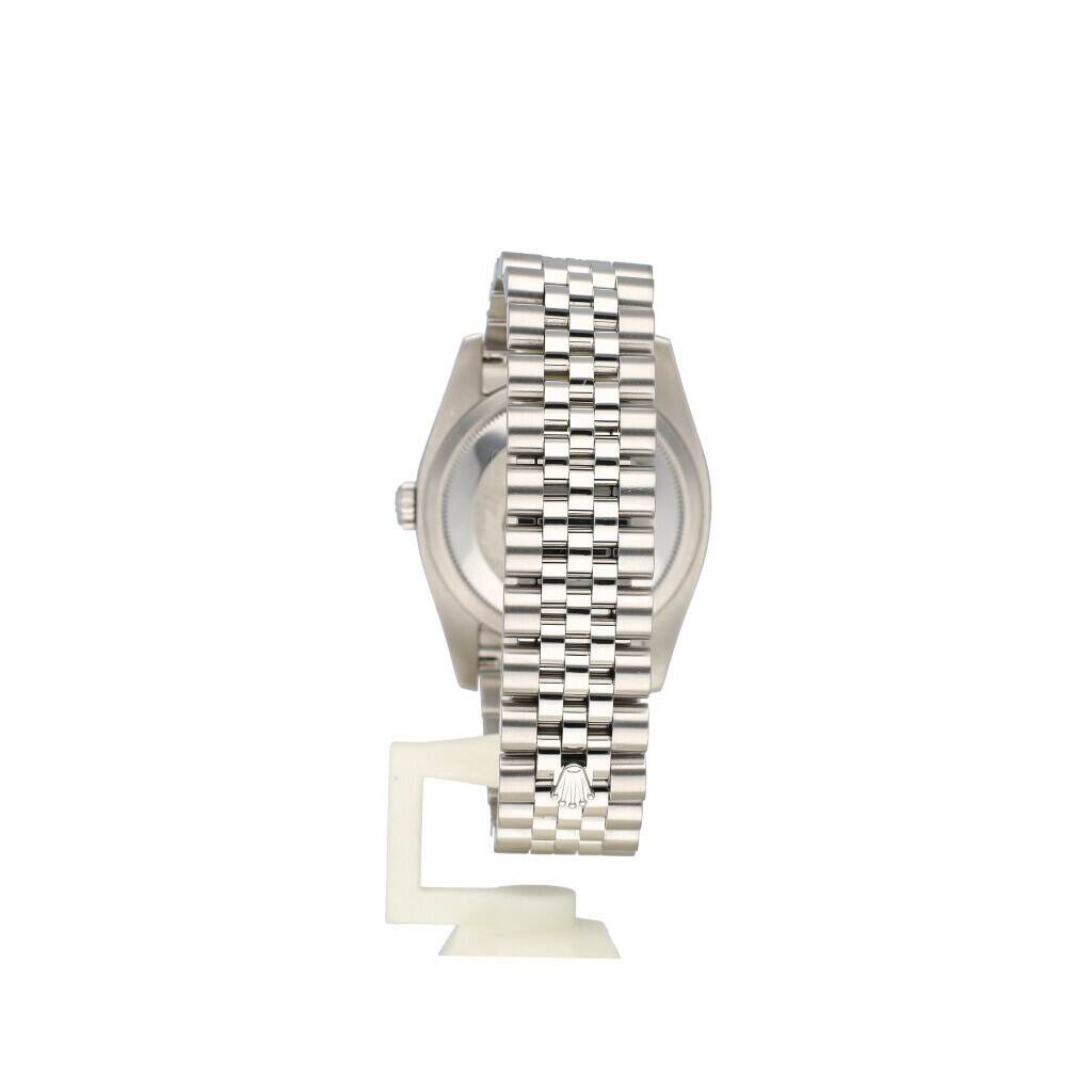 In very good condition Rolex Datejust 36 in steel with silver index dial, domed steel bezel and steel Jubilee bracelet from 2018 complete with box and papers. Rolex serviced 1-2026 and not worn since. Rolex service certificate included.