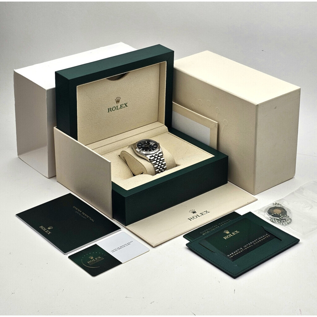 In very good condition Rolex Datejust 36 in steel and white gold with blue dial and Jubilee bracelet from 2022 complete with box and papers. Rolex serviced 1-2026 anbd not worn since. Rolex service certificate included.