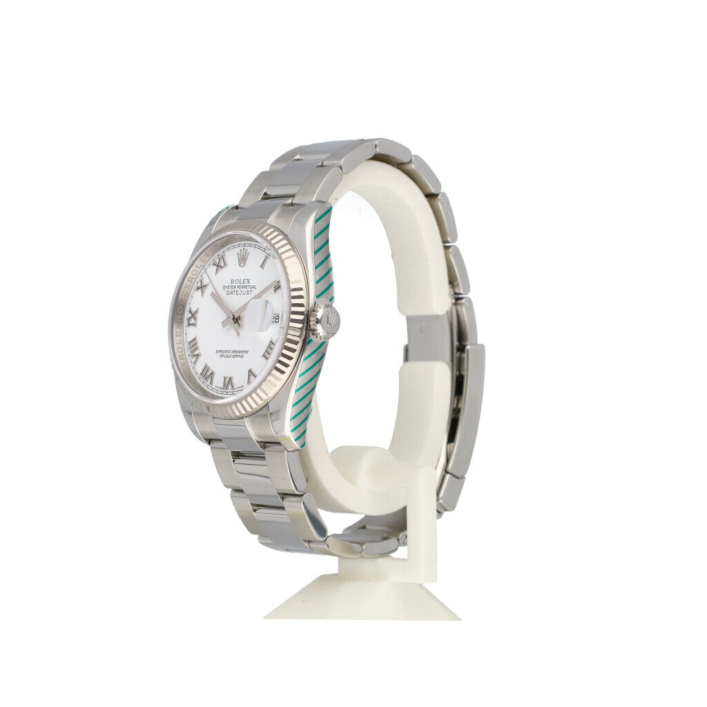 In very good condition Rolex Datejust 36 in steel and white gold with blue dial, white gold fluted bezel and steel Jubilee bracelet no box and/or papers. Rolex serviced 10-2025 and not worn since. Rolex service certificate included.