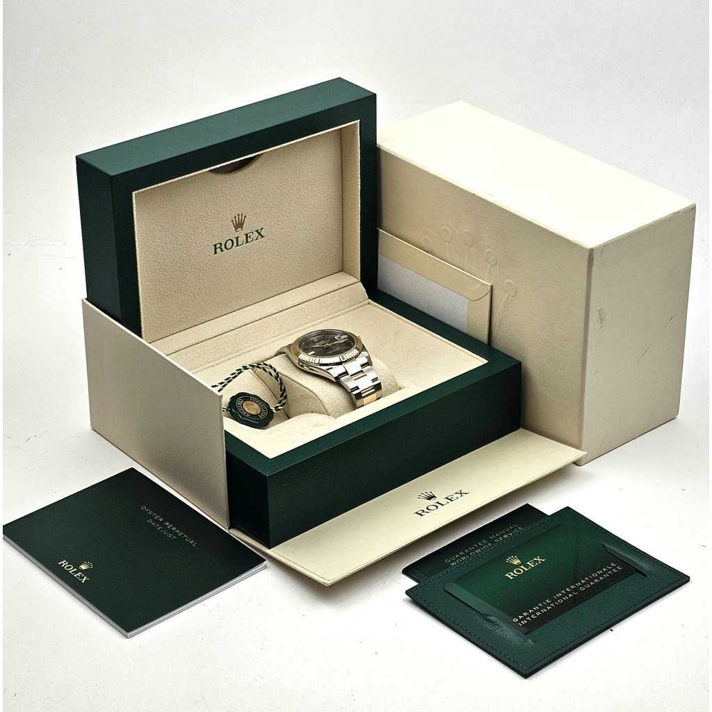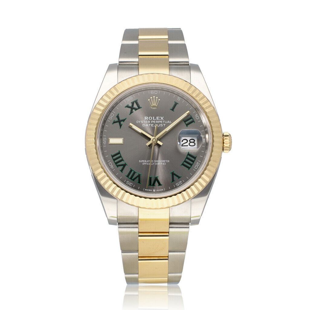 In very good condition Rolex Datejust 41 in steel and yellow gold with grey 'Wimbledon' dial and Oyster bracelet from 2024 complete with box and papers.