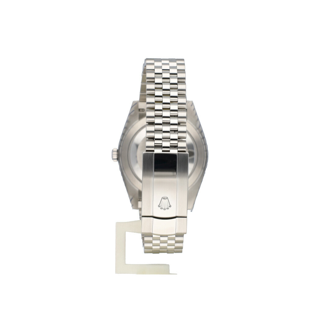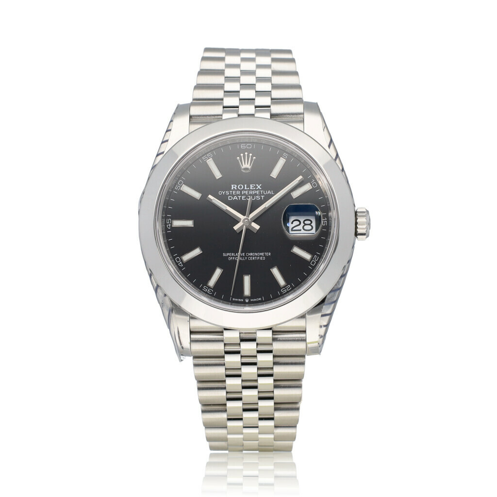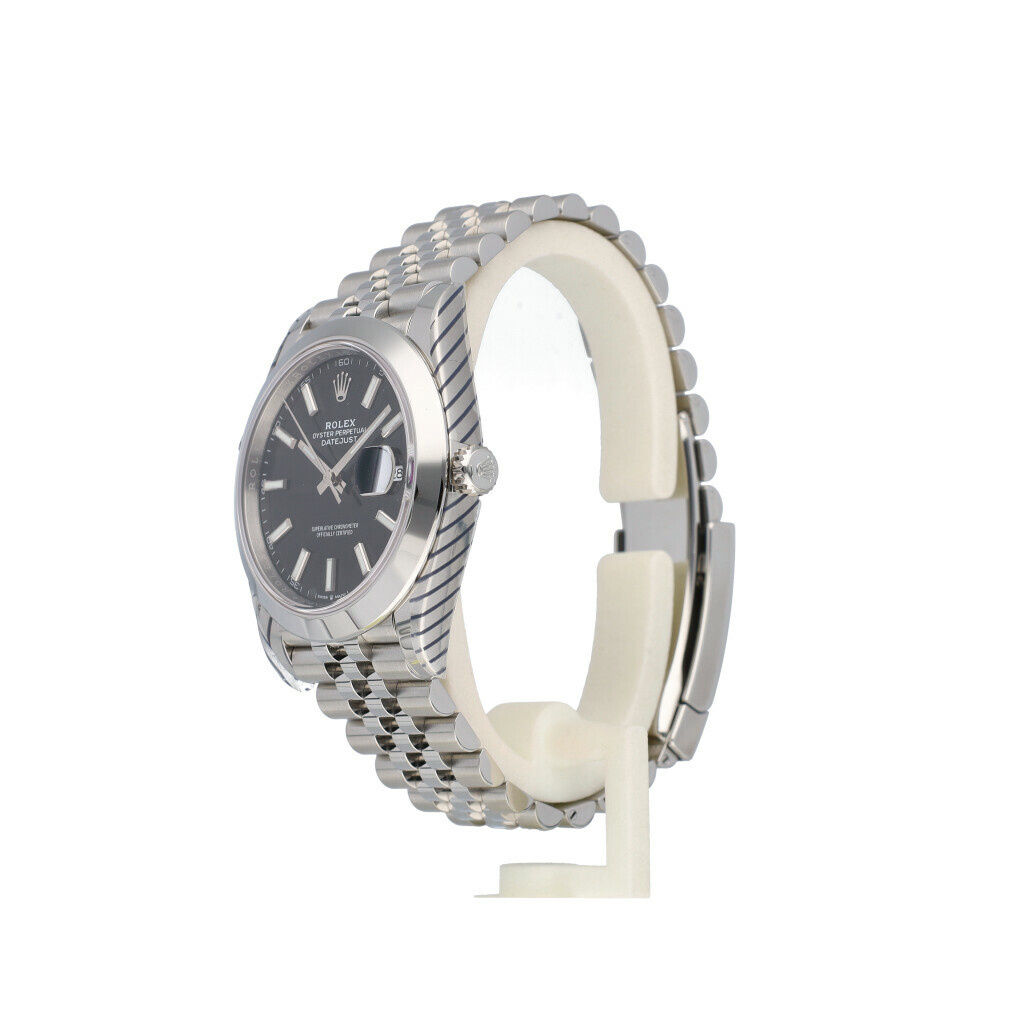 In very good condition Rolex Datejust 41 in steel with black index dial, steel domed bezel and steel Jubilee bracelet from 2020 complete with box and papers. Rolex serviced 9-2025 and not worn since. Rolex service certificate included.