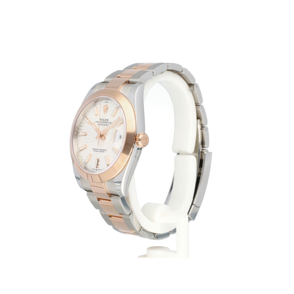 In very good condition Rolex Datejust 41 in steel and rose gold with silver fluted/motif dial and Oyster bracelet from 2023 complete with box and papers.
