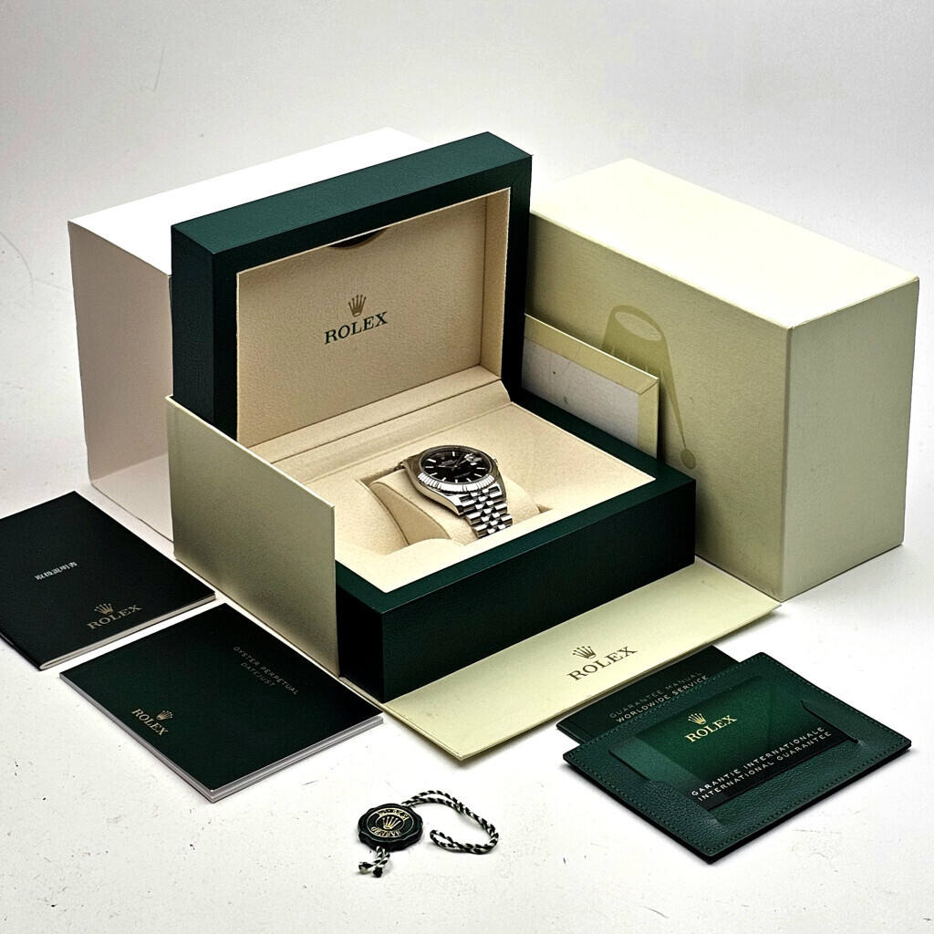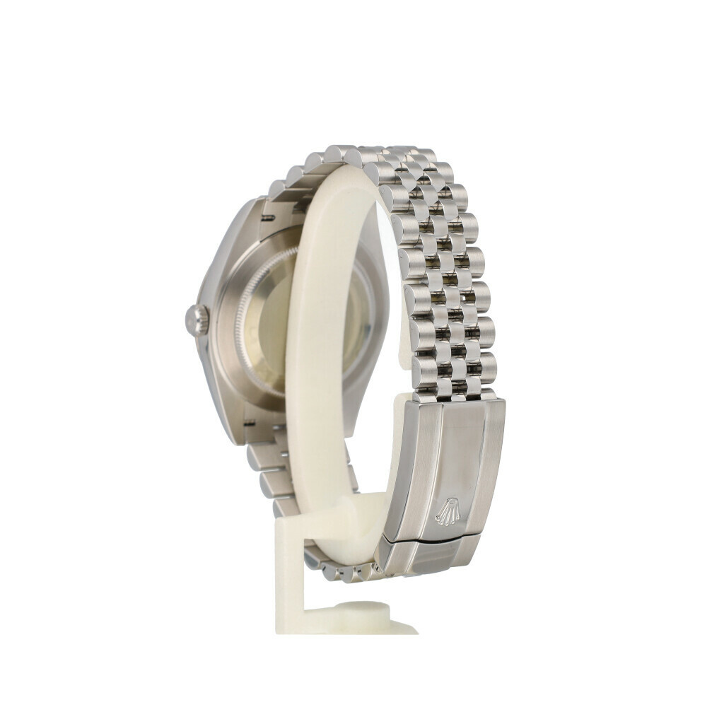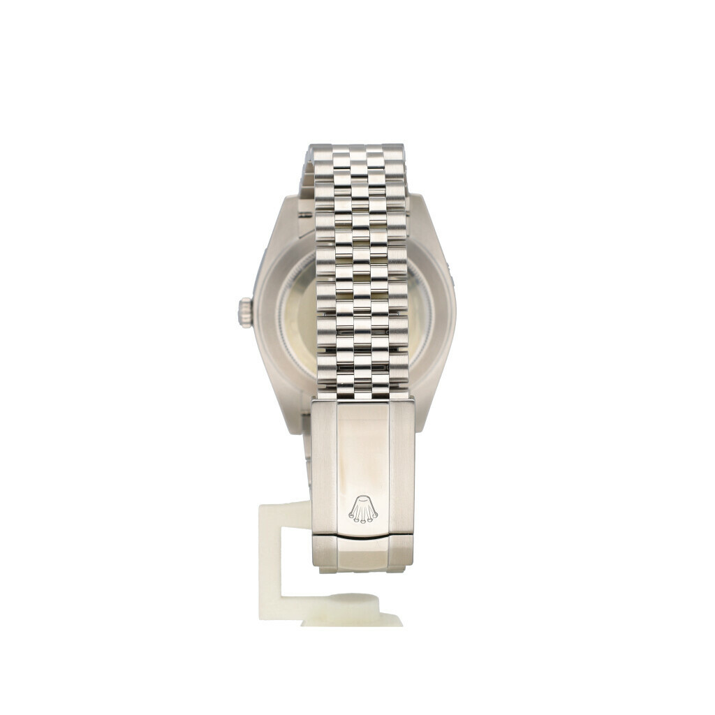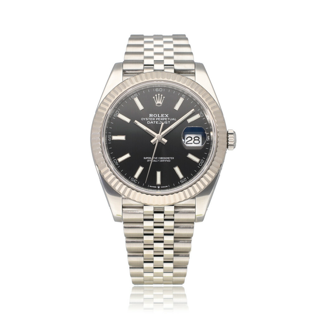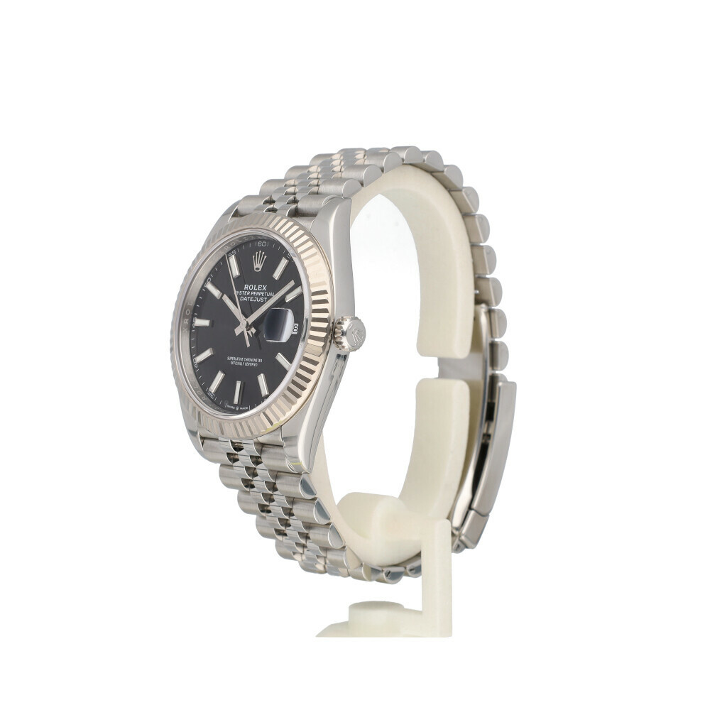 In very good condition Rolex Datejust 41 in steel and white gold with black dial, white gold bezel and steel Jubilee bracelet from 2020 complete with box and papers.