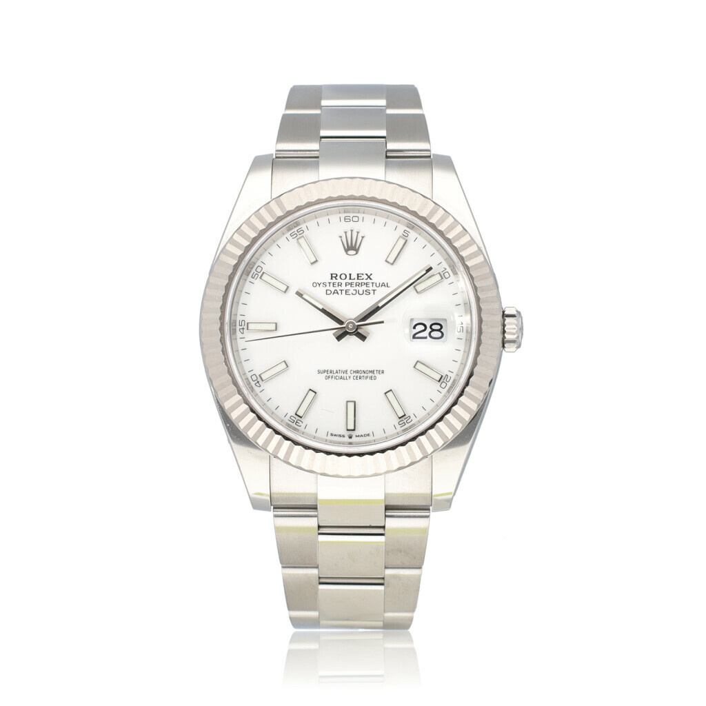 In very good condition Rolex Datejust 41 in steel with white dial and Oyster bracelet from 2024 complete with box and papers.