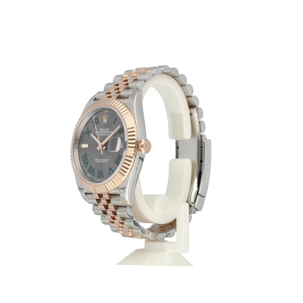 In very good condition Rolex Datejust 41 in steel and rose gold with grey so called 'Wimbledon' dial and steel and rose gold Jubilee bracelet from 2022 complete with box and papers. Rolex serviced 6-2025 and not worn since. Rolex service certificate included.