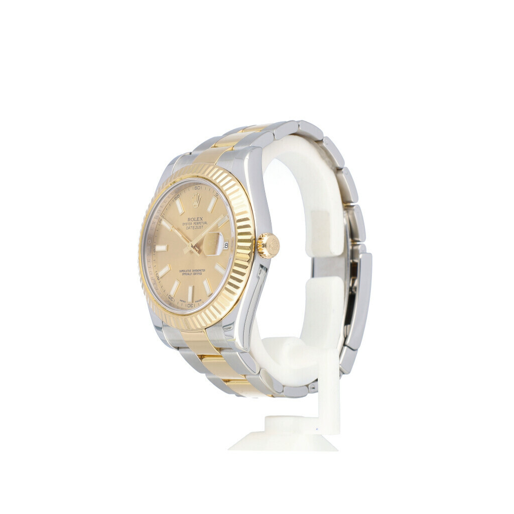 In very good condition Rolex Datejust 41 in steel and yellow gold with champagne coloured dial and Oyster bracelet from +/- 2008/2009 (V817... serial, no date filled in on certificate) complete with papers, no box.