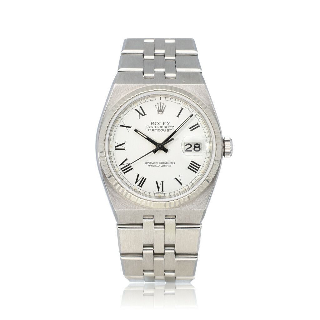 In very good condition Rolex Datejust Oysterquartz in steel with white roman Buckley dial from +/- 1981 (706.... serial). No box and/or papers.