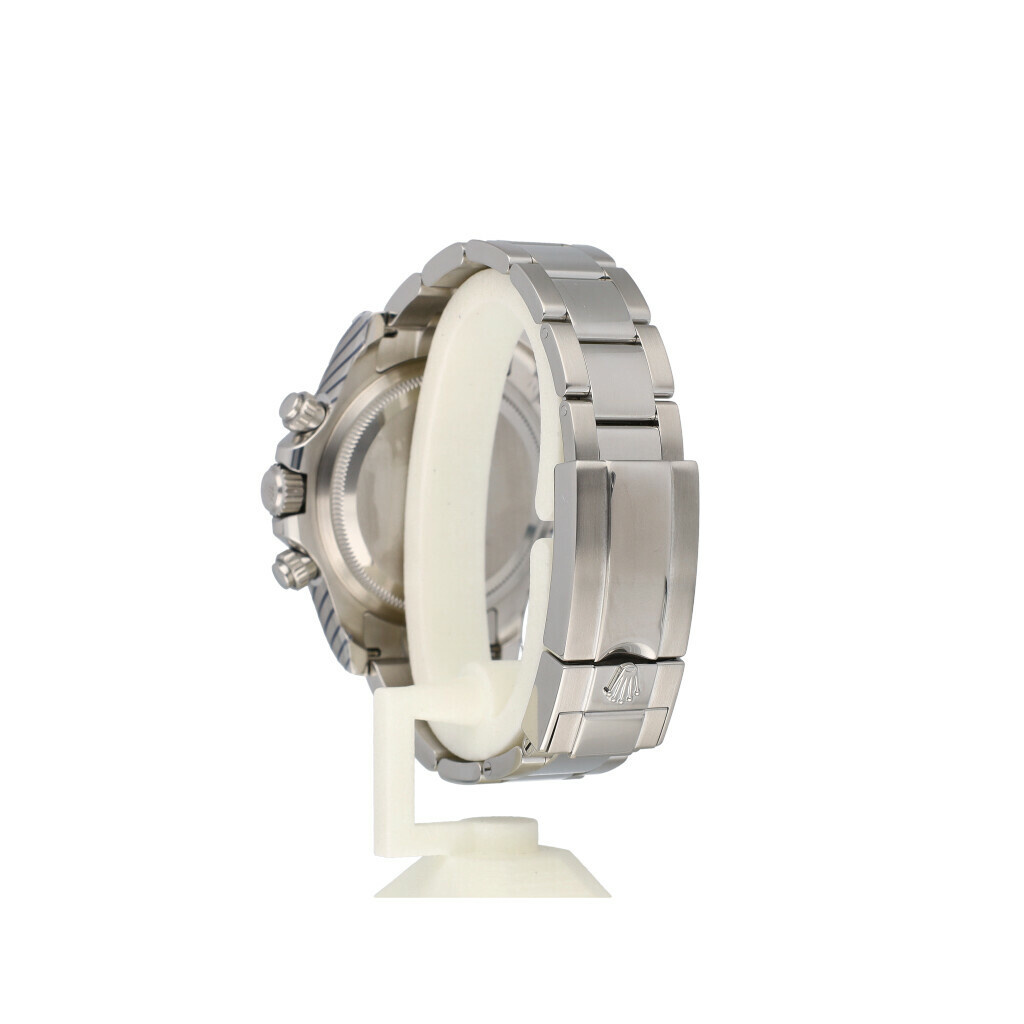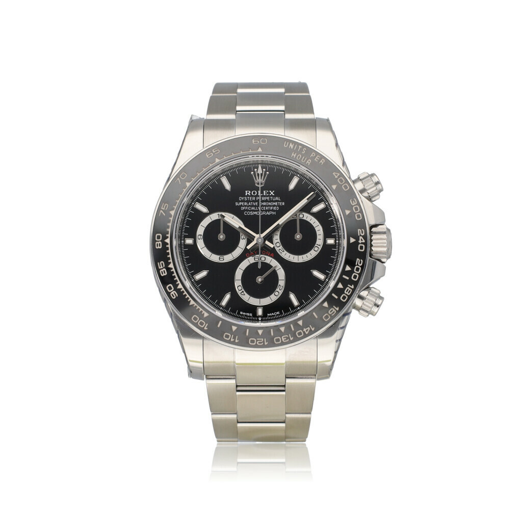 In very good condition Rolex Daytona in steel with black dial, black ceramic bezel and steel Oyster bracelet from 2024 complete with box and papers.