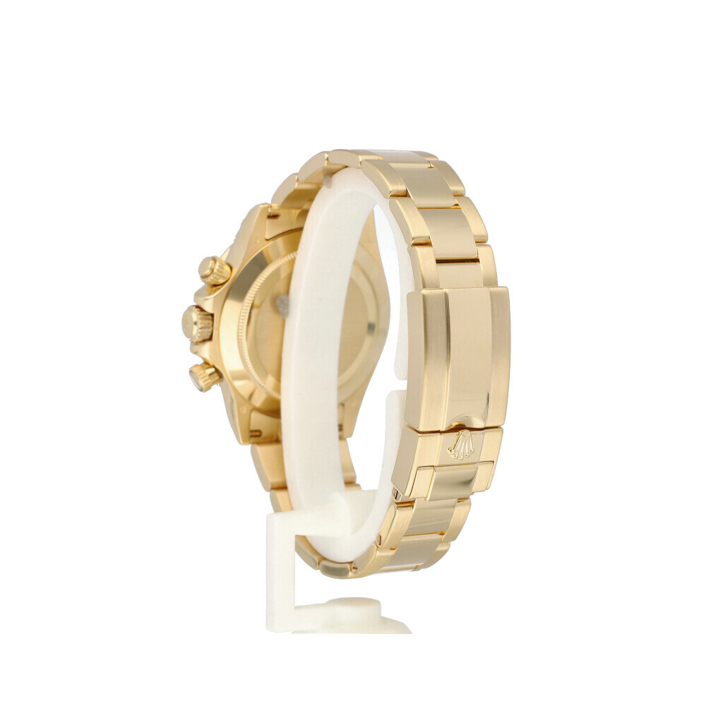 In very good condition Rolex Daytona in yellow gold with champagne coloured dial and yellow gold Oyster bracelet from 2011 complete with box and papers. Rolex serviced 6-2025 and not worn since. Rolex service certificate included.
