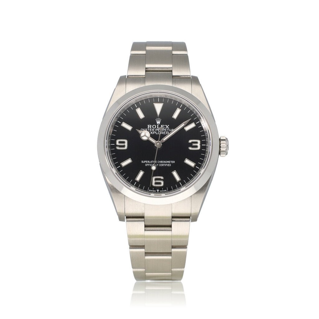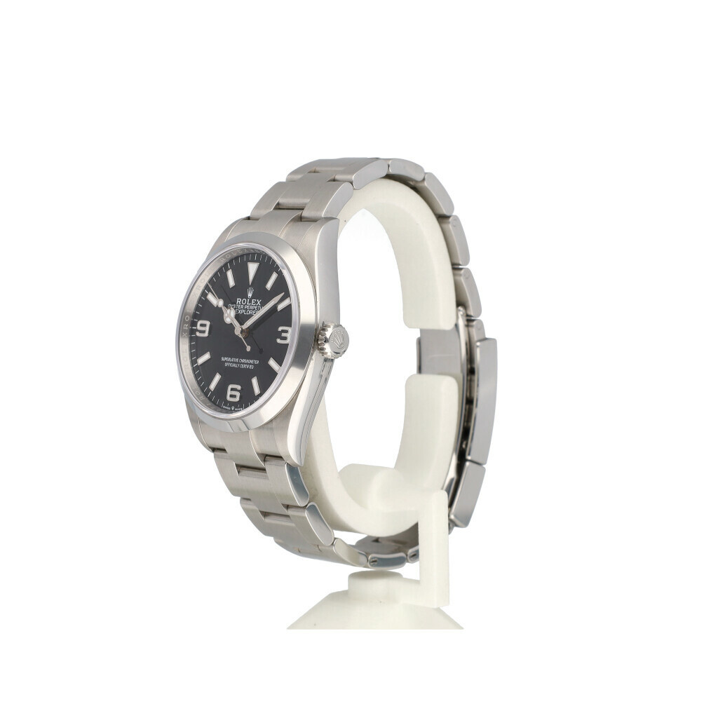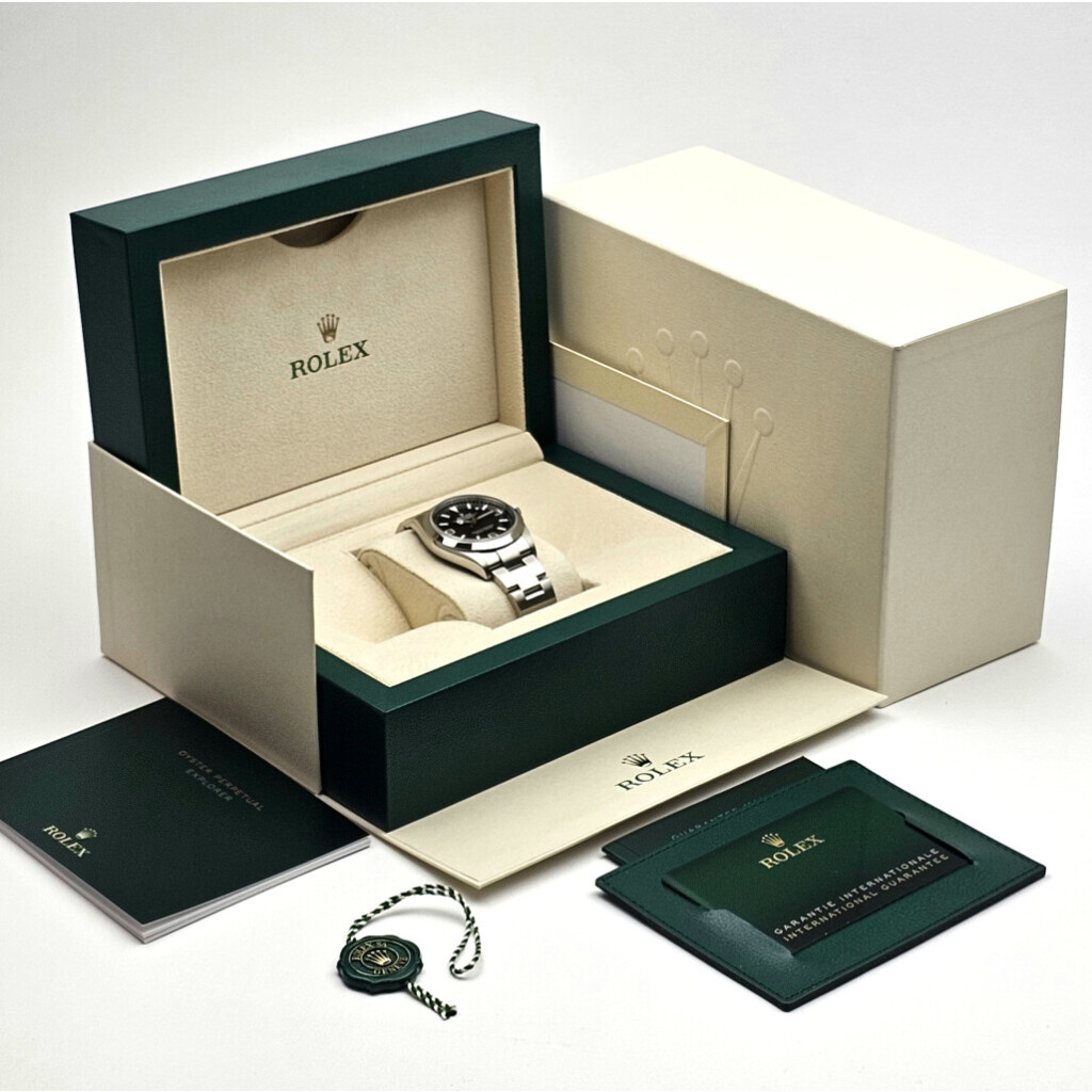 In very good condition Rolex Explorer I in steel with black dial, steel domed bezel and steel Oyster bracelet from 2024 complete with box and papers.
