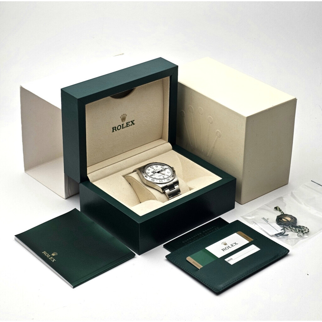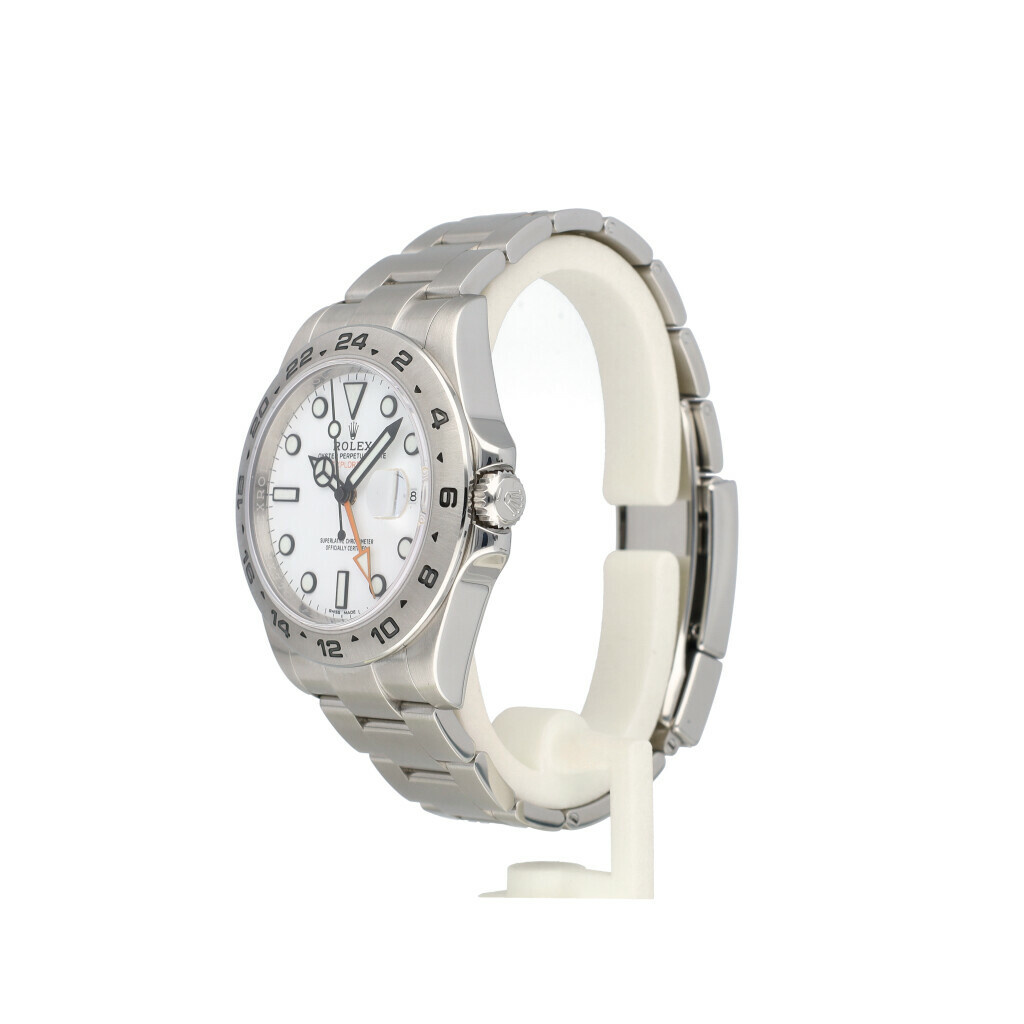 In very good condition Rolex Explorer II with white dial, steel domed bezel and steel Oyster bracelet from 2017 complete with box and papers.