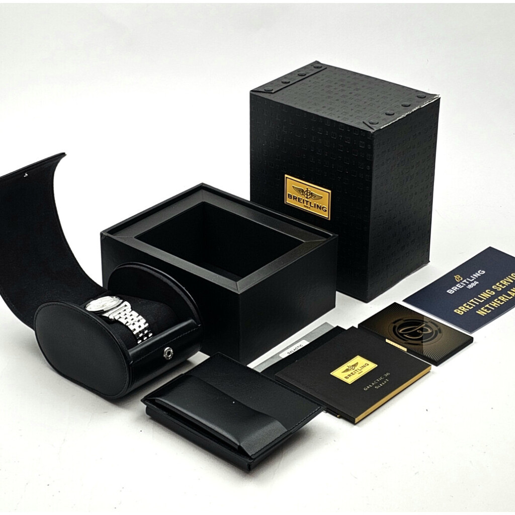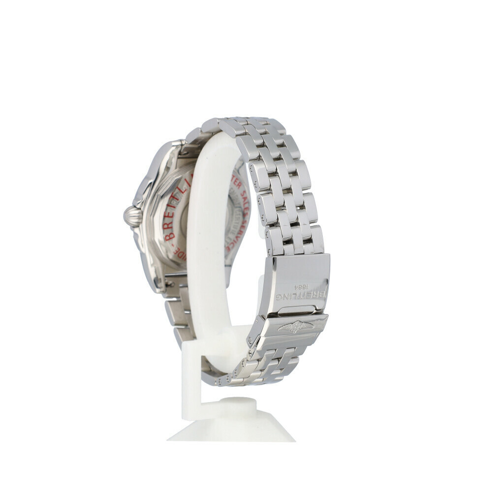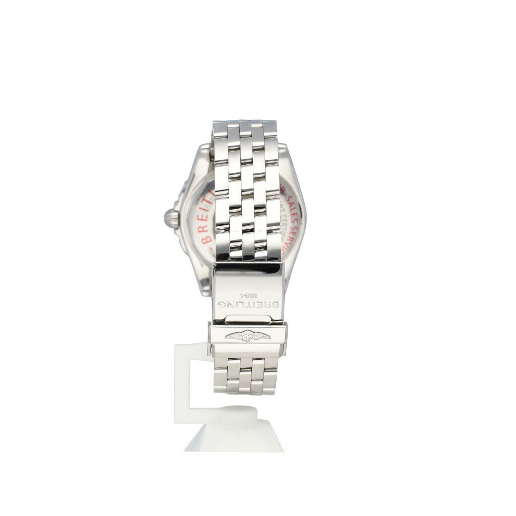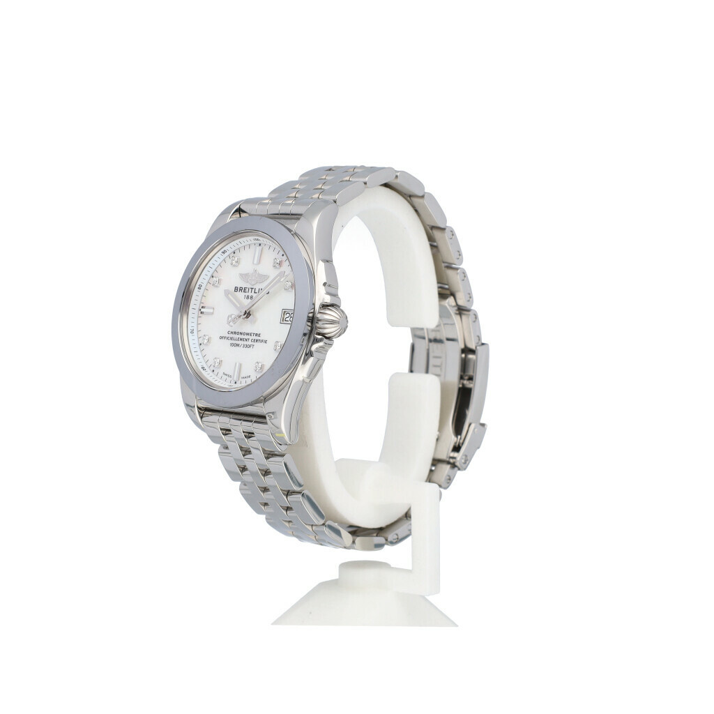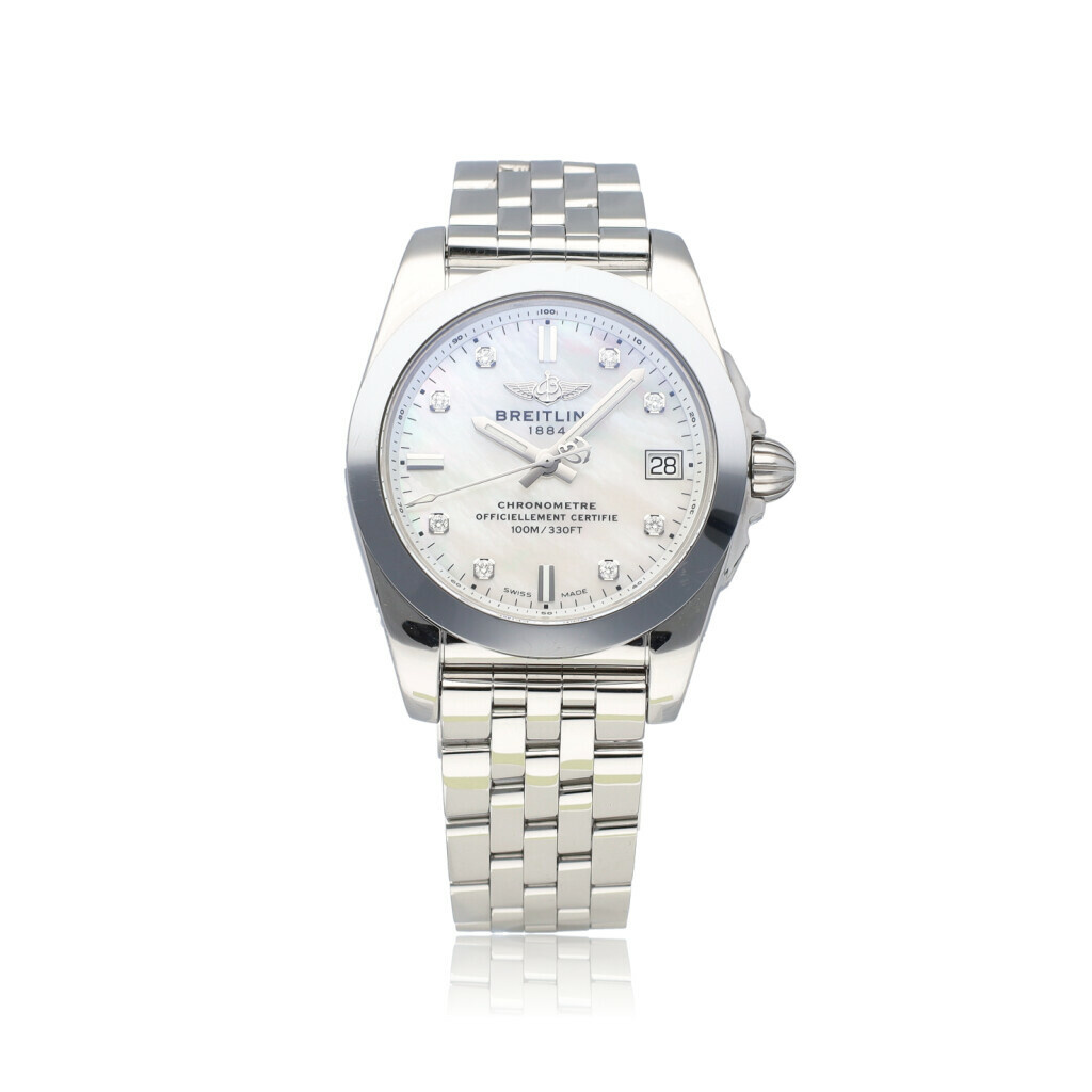 In very good condition Breitling Galactic in steel with Mother of Pearl dial diamond dial and domed bezel from 2015 complete with box and papers. Breitling serviced 1-2025 and not worn since. Breitling service certificate included.