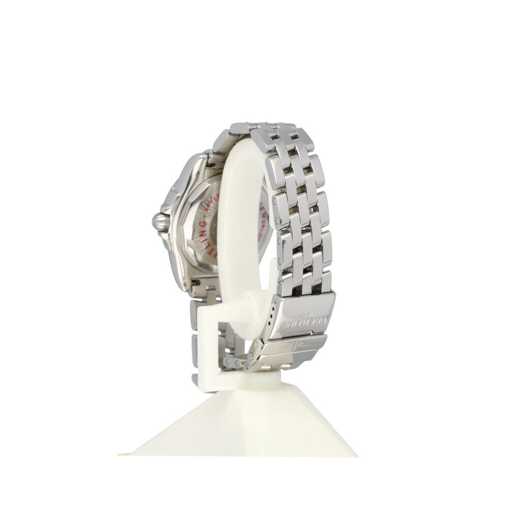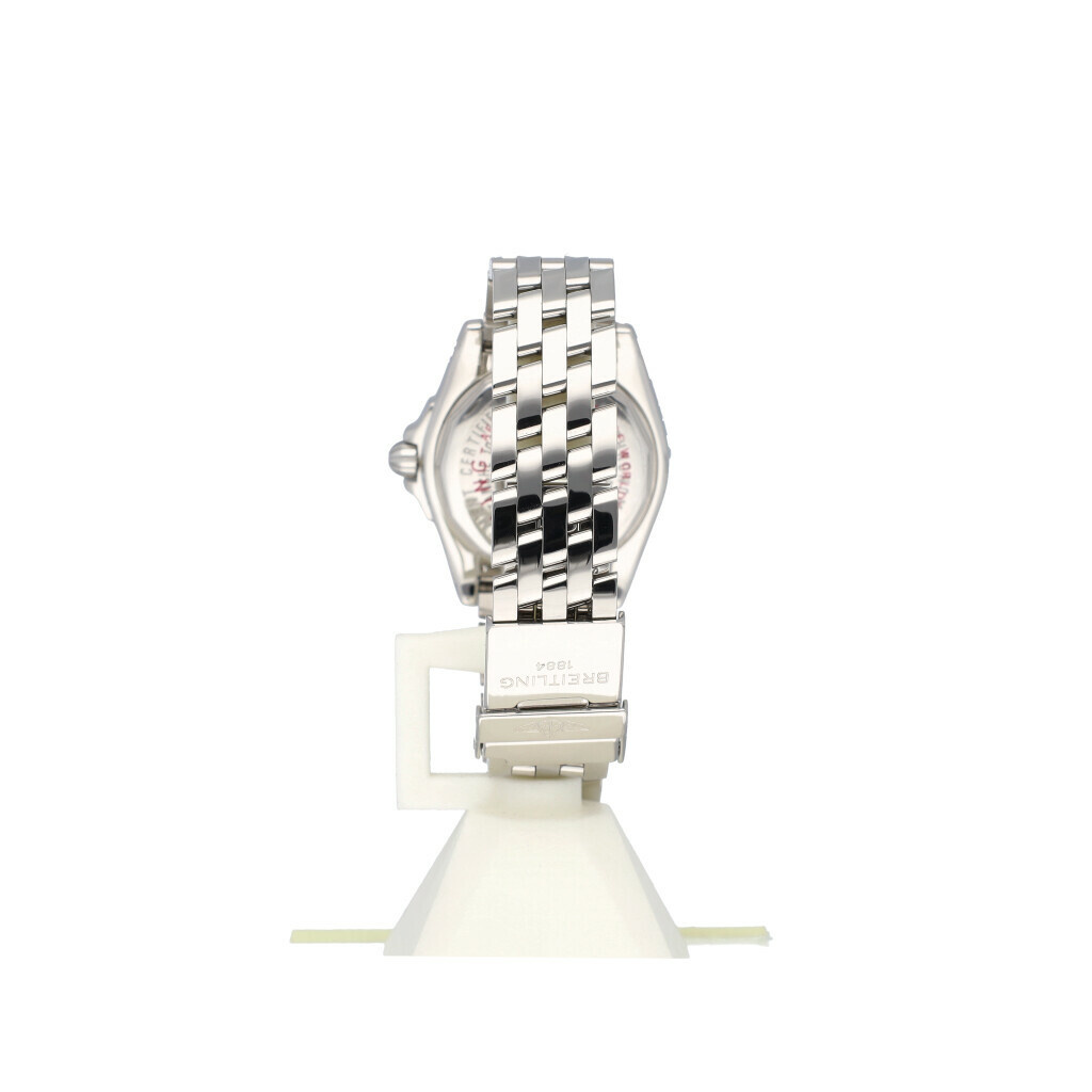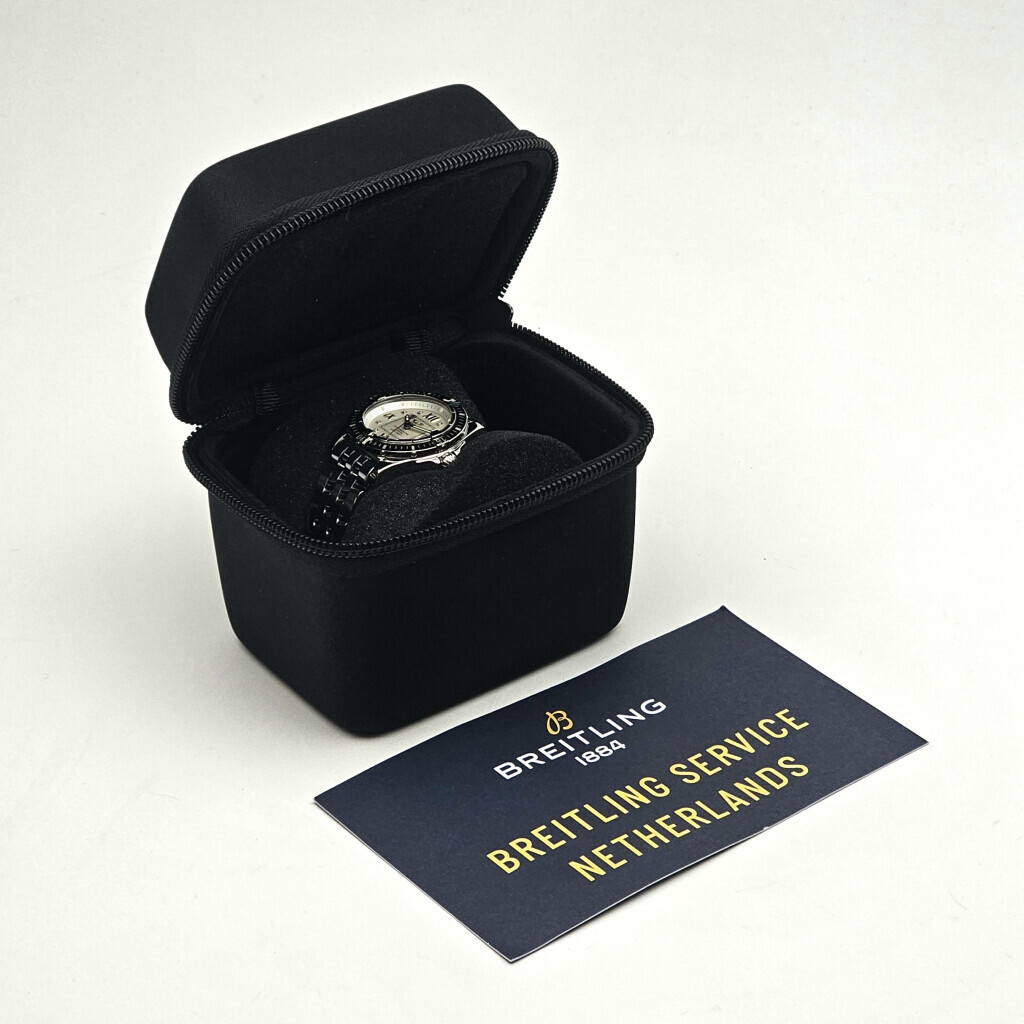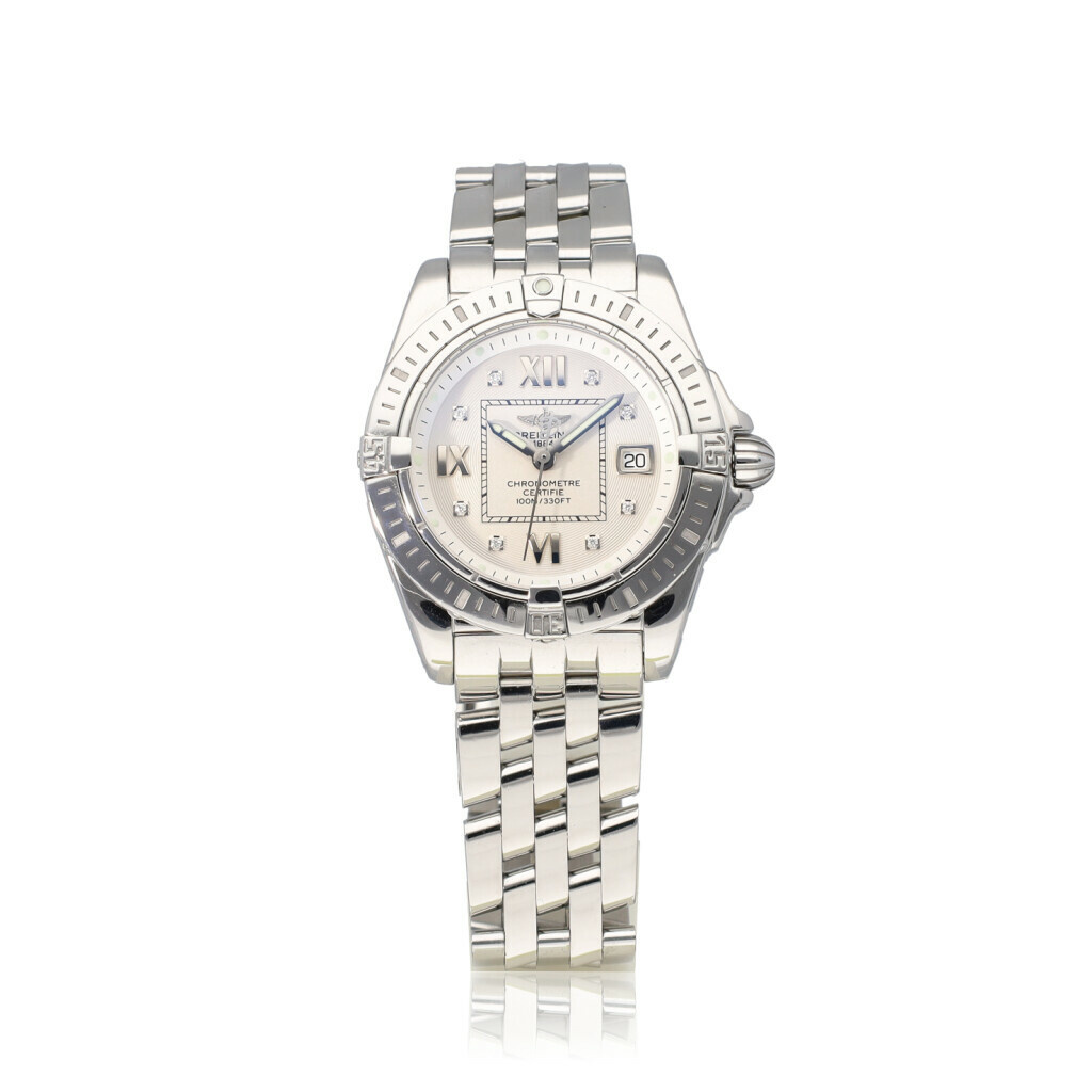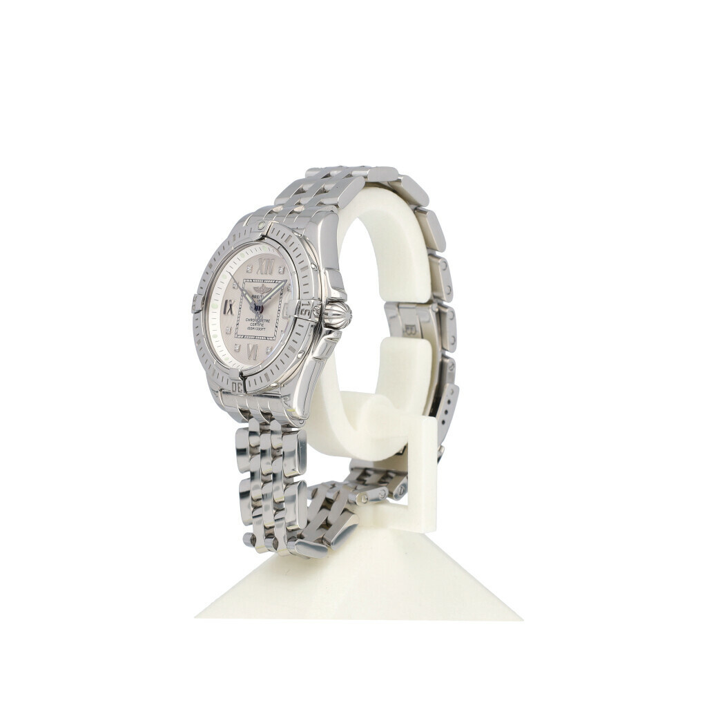 In very good condition Breitling Galactic Lady 32 mm in steel with factory white diamond dial and steel bracelet. No box and/or papers. Breitling serviced 10-2025 and not worn since. Breitling service certificate included.
