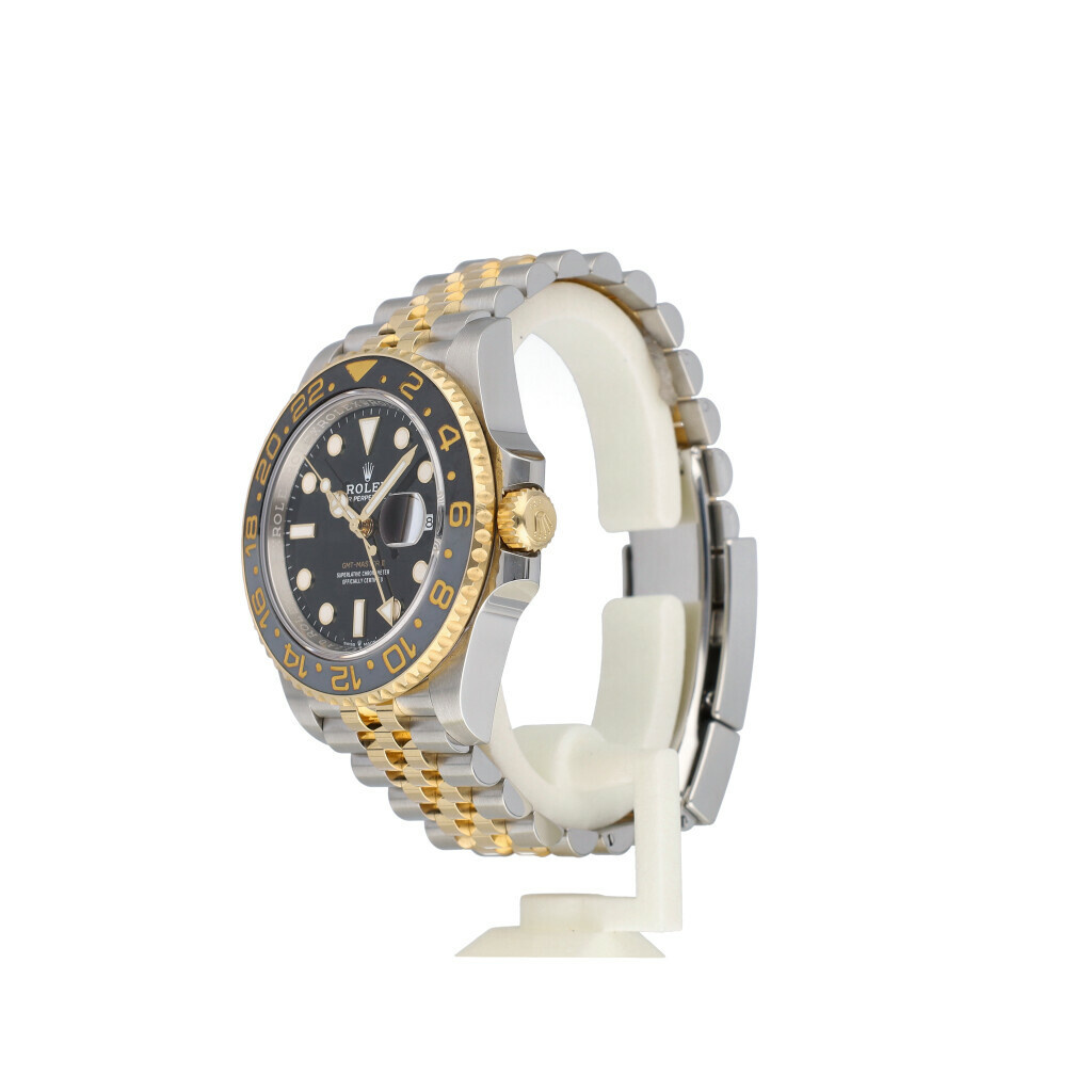 In very good condition Rolex GMT-Master II in steel and yellow gold with black dial, black and grey cermaic bezel and steel and yellow gold Jubilee bracelet from 2023 complete with box and papers.