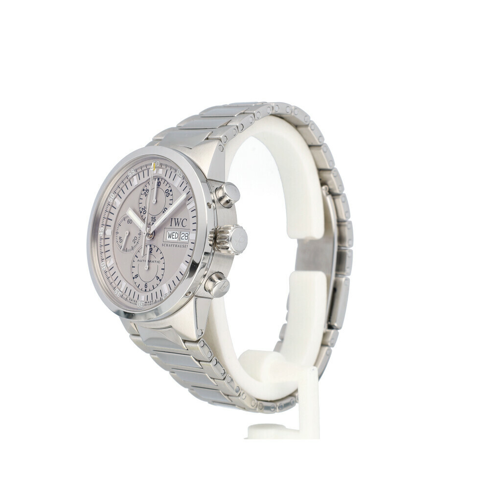 In very good condition IWC GST Chronograph in steel with silver / grey dial and steel bracelet from 2002 complete with box and papers.
