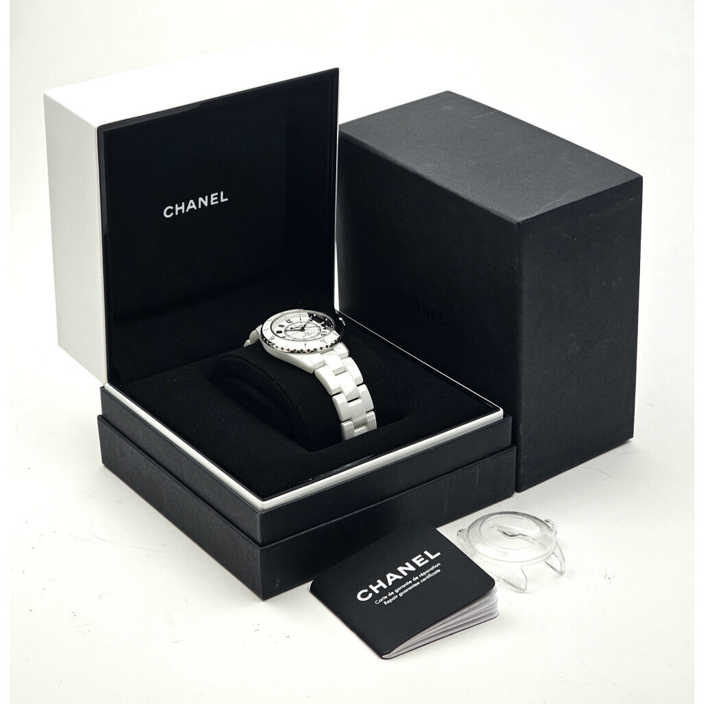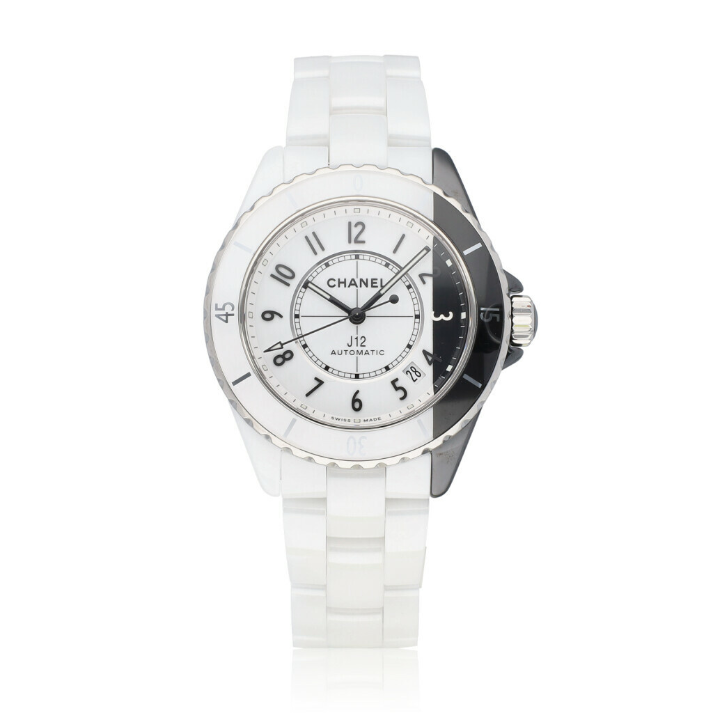 In very good condition Chanel J12 Paradoxe in ceramic black and white with ceramic bracelet from 2020 complete with box and papers.