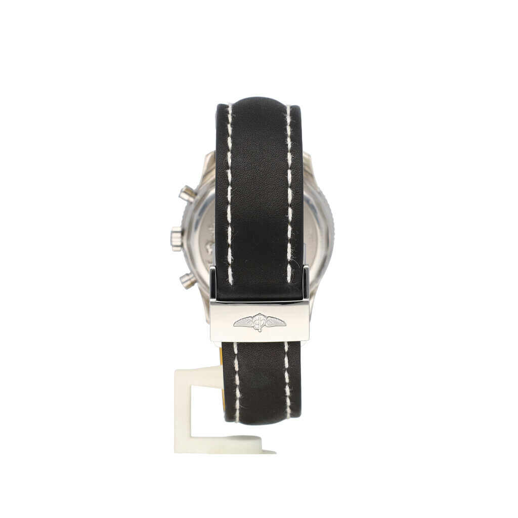 In very good condition Breitling Navitimer Montbrillant Olympus in steel with black dial and brand new Breitling leather strap. No box and/or papers.