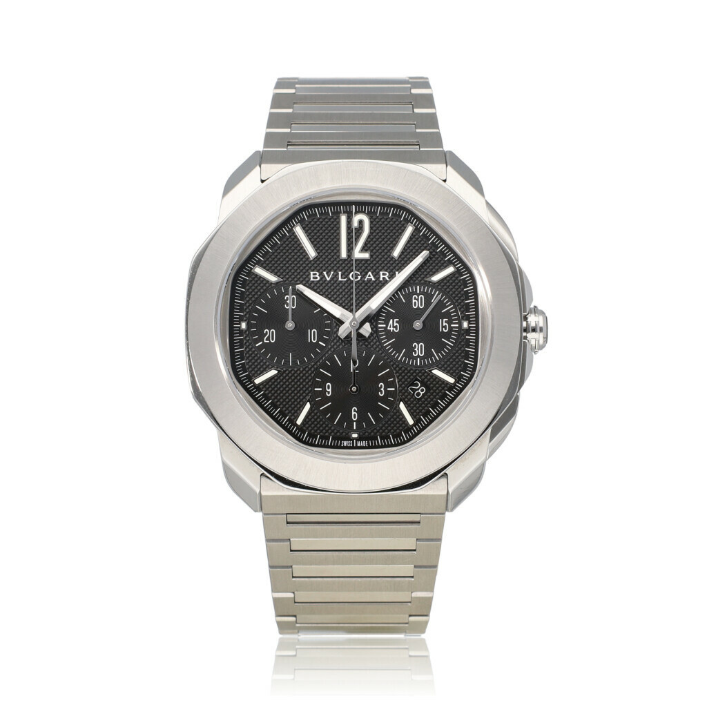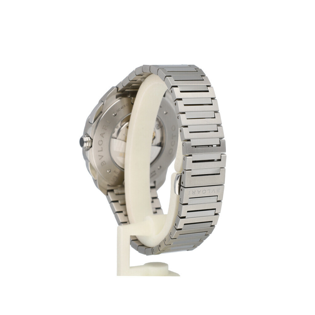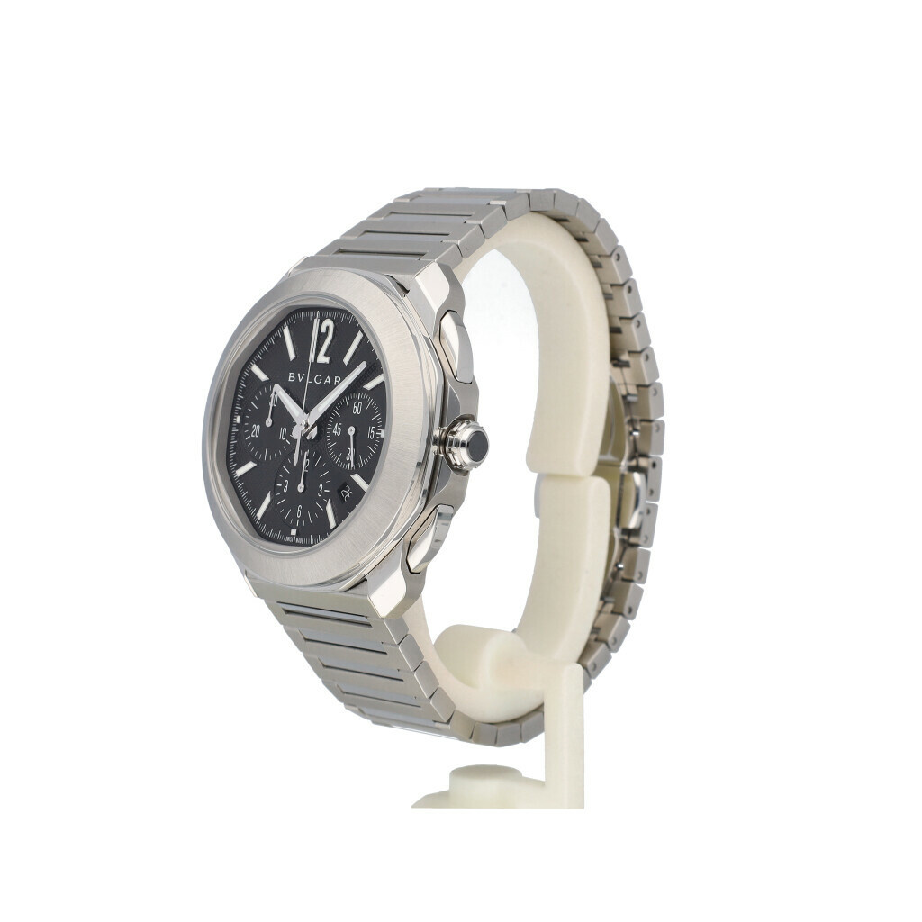 In very good condition Bvlgari Octa Roma Watch in steel with black dial from 2023 complete with box and papers.