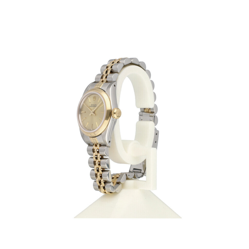 In very good condition Rolex Oyster Perpetual 24mm in steel and yellow gold with champagne coloured dial, yellow gold domed bezel and steel and yellow gold Jubilee bracelet from +/- 1989 (L252... serial). No box and/or papers. Rolex serviced 11-2025 and not worn since. Rolex service certificate included.