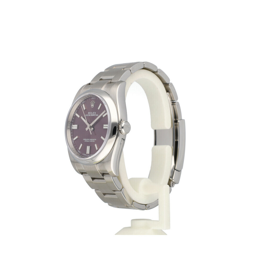 In very good condition Rolex Oyster Perpetual 36 in steel with so called red grape dial, steel domed bezel and steel Oyster bracelet from 2018 complete with papers, no box.