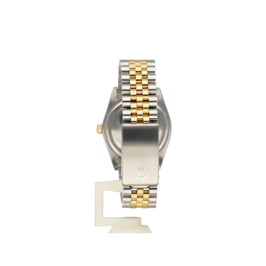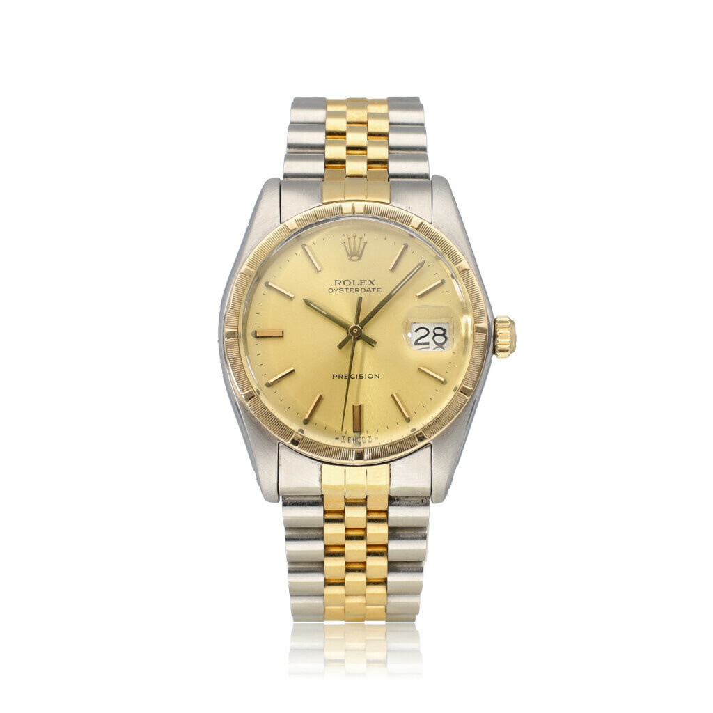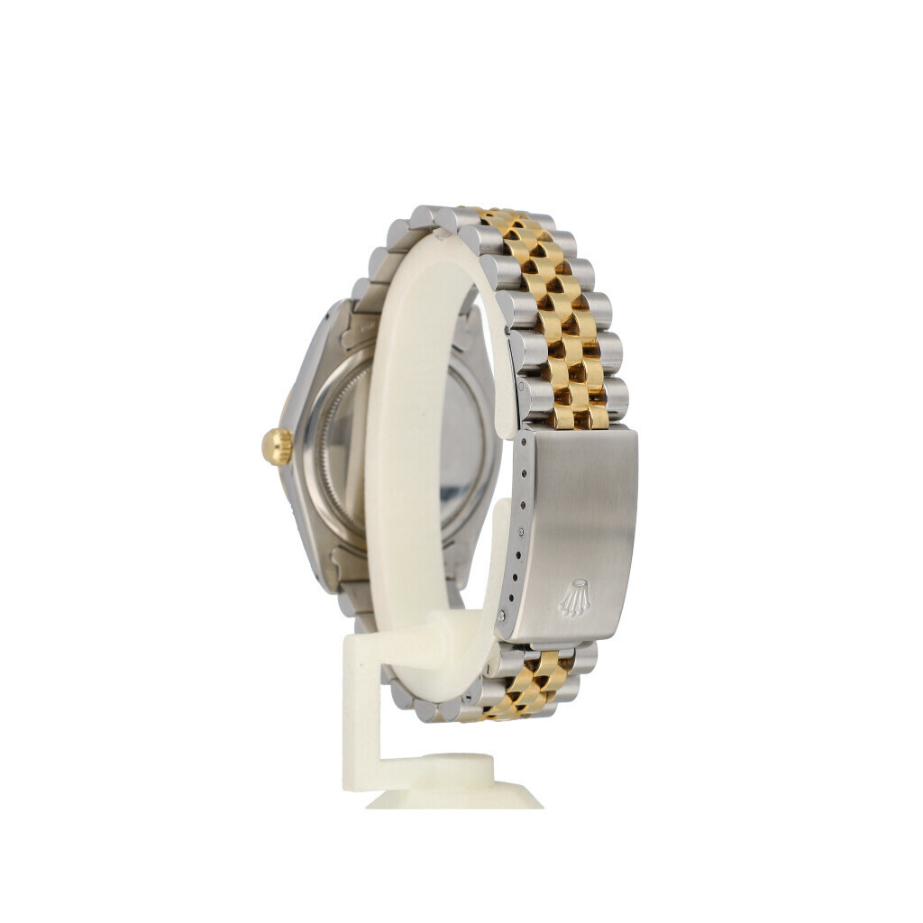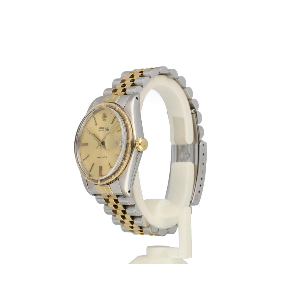 In very good condition, rare Rolex Oysterdate 34 in steel - yellow gold with yellow gold so called engine turned bezel, champagne index dial and steel and yellow gold Jubilee bracelet from +/- 1983 (7591... serial). No box and/or papers.