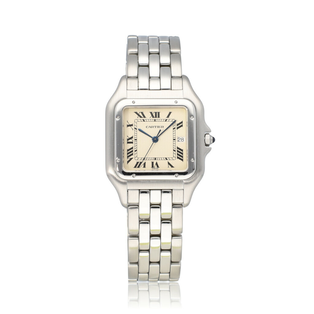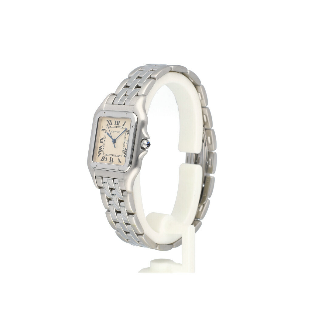 In very good condition Cartier Panthère in steelwith silver coloured dial and steel bracelet from 1998 complete with box, papers and original receipt.