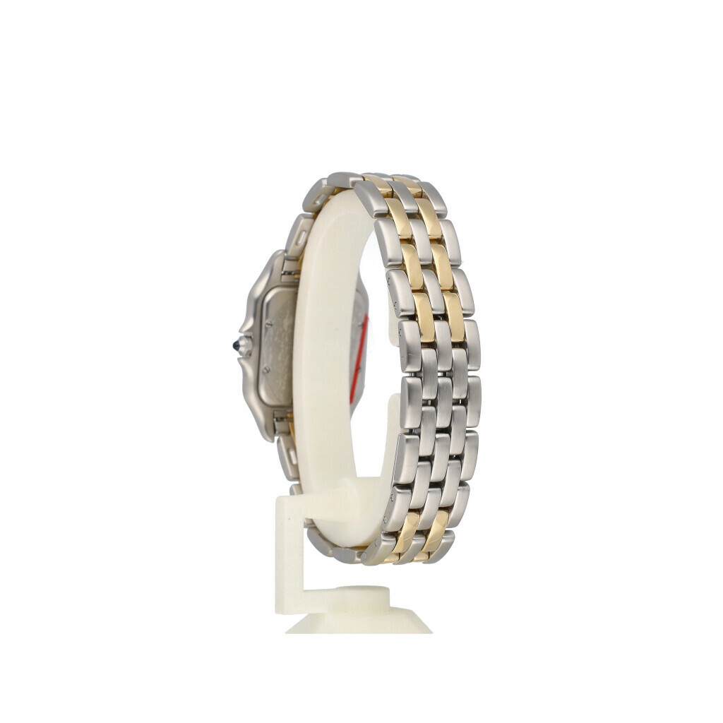 In very good condition Cartier Panthère in steel and yellow gold with ivory roman dial. complete with papers, no box.