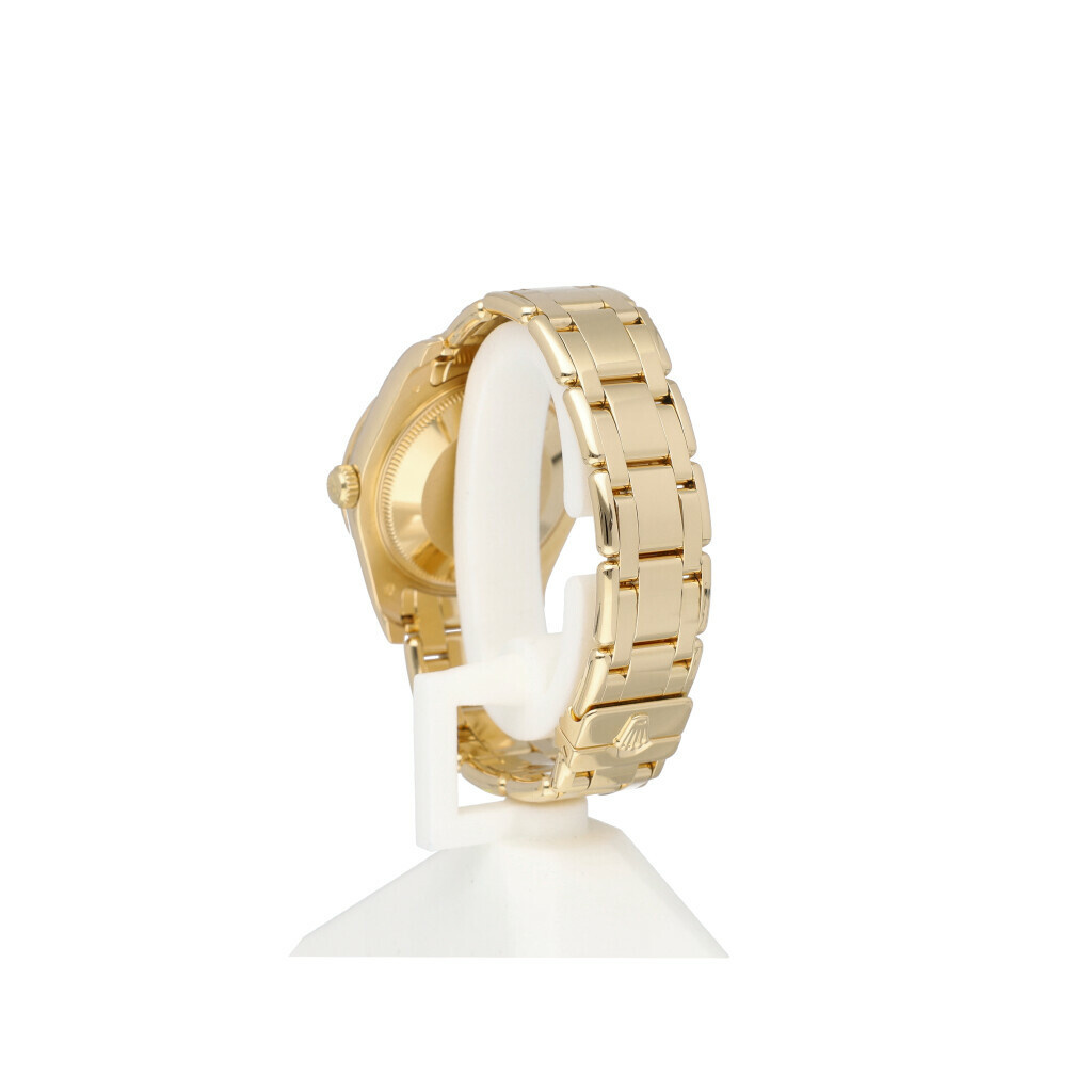 In very good condition Rolex Pearlmaster 34 in gold with goldust so called factory 'dream' mother of pearl diamond dial from 2011 complete wtih box and papers. Rolex serviced 4-2025 and not worn since. Rolex service certificate included.
