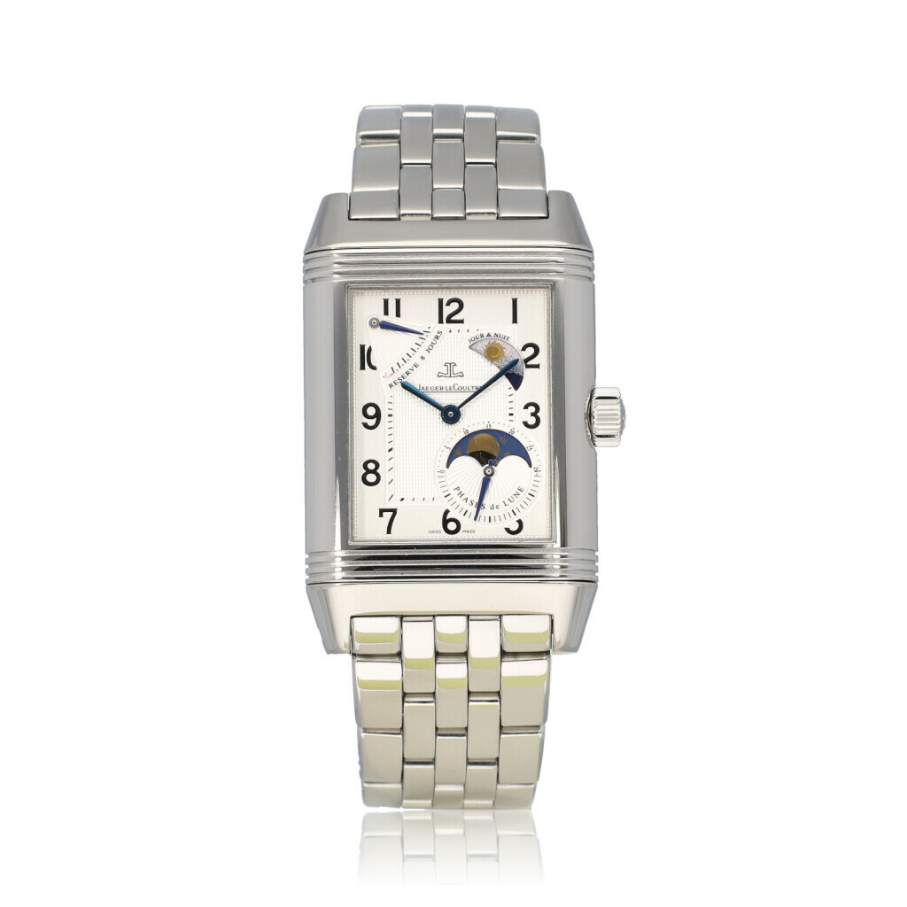 In very good condition Jaeger-LeCoultre Grande Reverso in steel with Sun and Moon comes with no box and/ or papers.