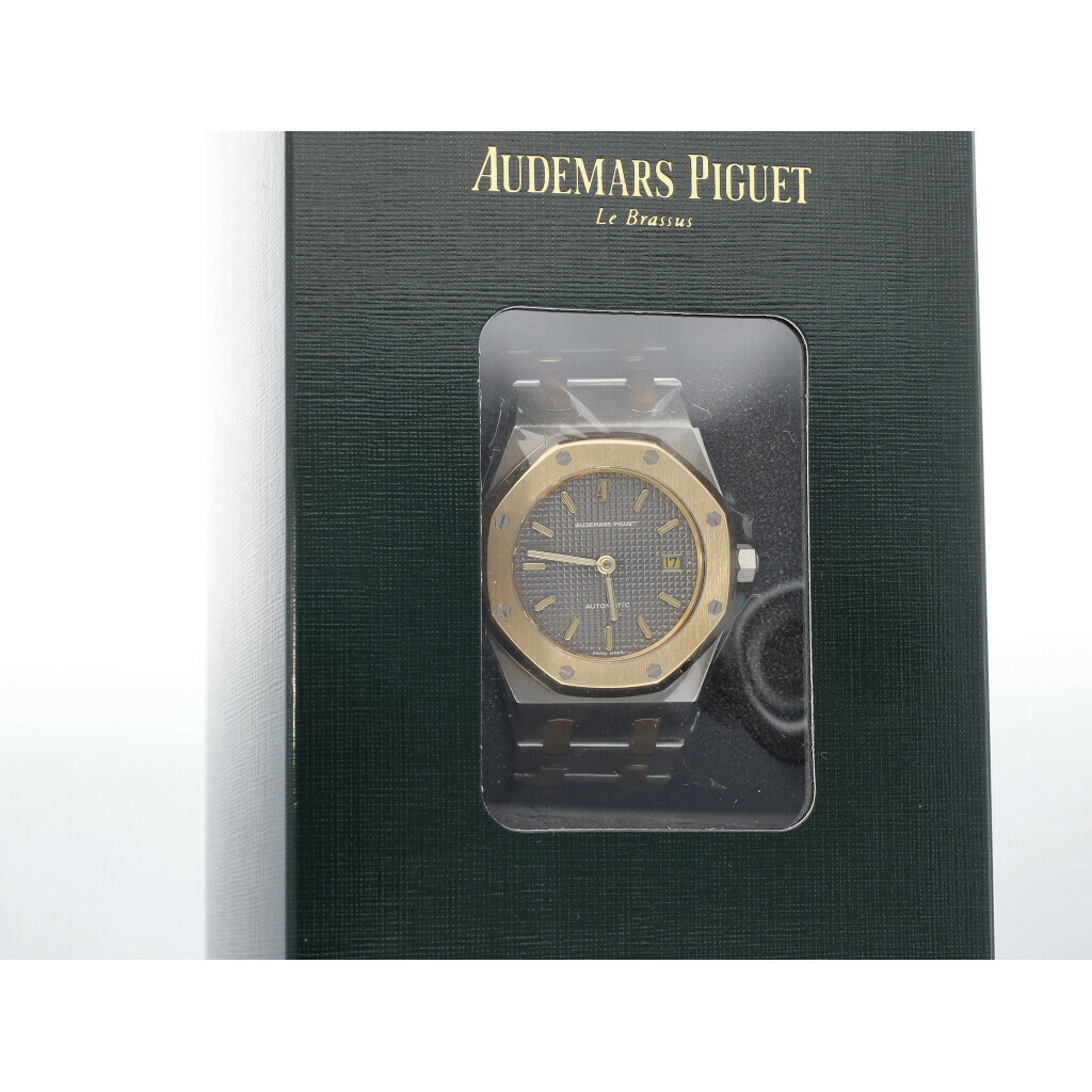In very good condition Audemars Piguet Lady Royal Oak in steel and yellow gold with grey dial from 1993 complete with box and papers. AP serviced for € 2.145,- and not worn since. Service sealed, AP service papers included.