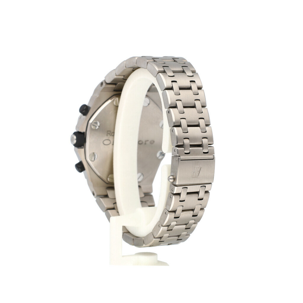 In very good condition Audemars Piguet Royal Oak Offshore in titanium with black dial, titanium bezel and titanium Audemars Piguet bracelet. No box and/or papers. AP serviced 1-2023 and hardly worn since. AP service invoice included.