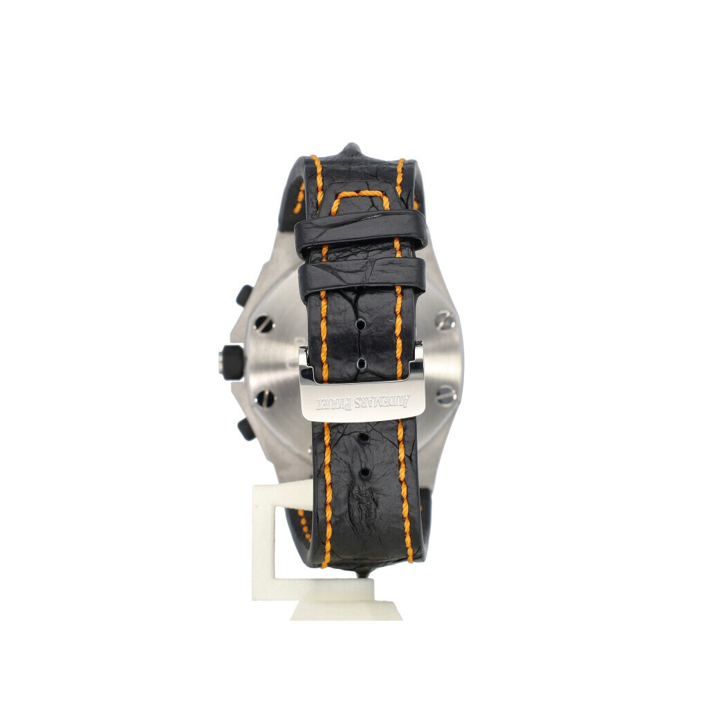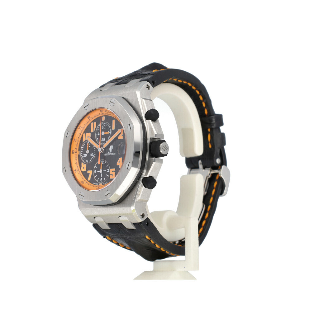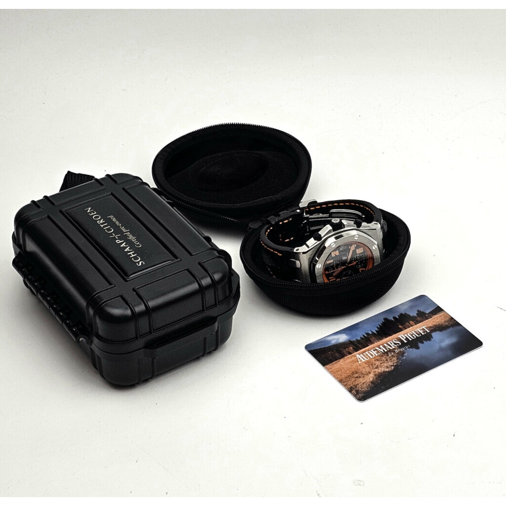 In very good condition Audemars Piguet Royal Oak Offshore Chronograph Volcano in steel with brand new AP strap complete with AP extract from the archives, no box. AP serviced 2-2026 for € 7.320,- including new AP strap and clasp and not worn since.