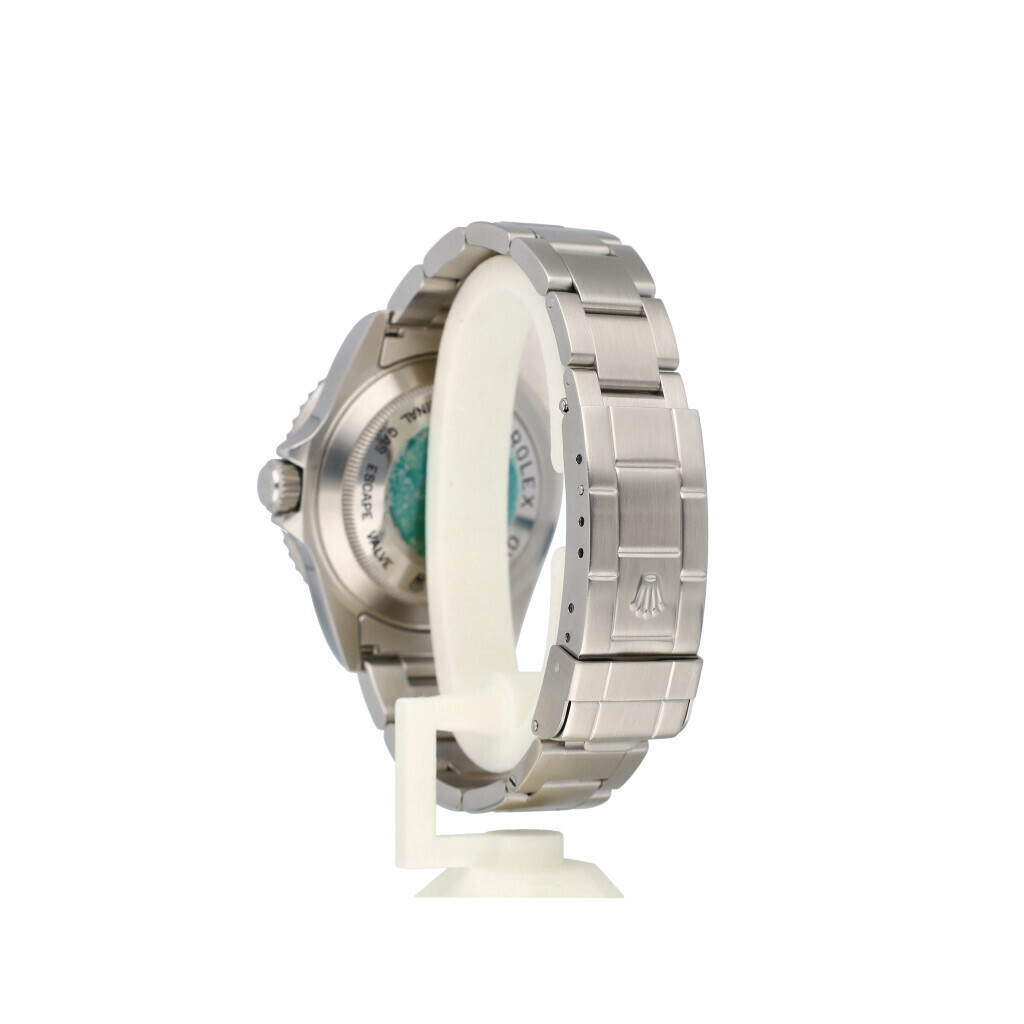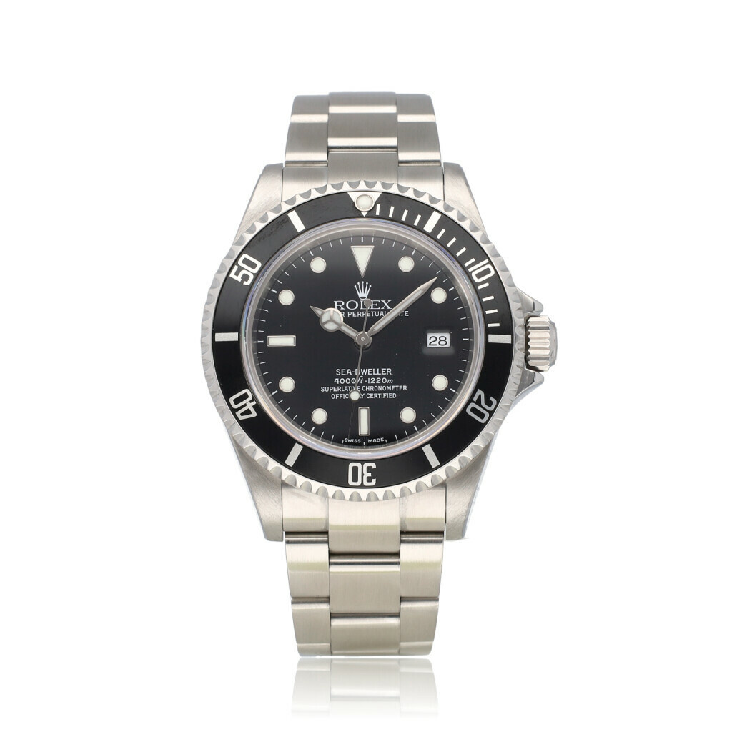 In very good condition Rolex Sea-Dweller 4000 in steel with black dial, black bezel and steel Oyster bracelet from +/- 2004 (F036... serial). No box and/or papers. Rolex serviced 11-2025 and not worn since. Rolex service certificate included.