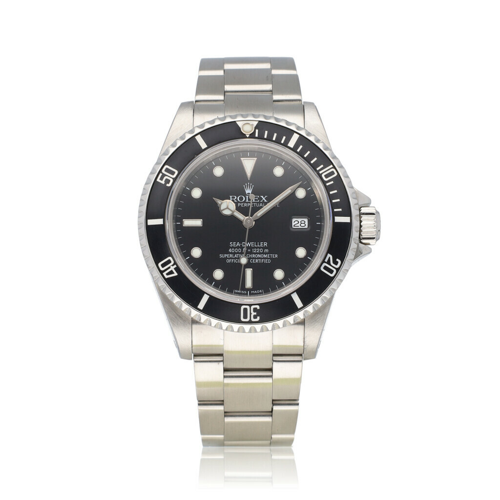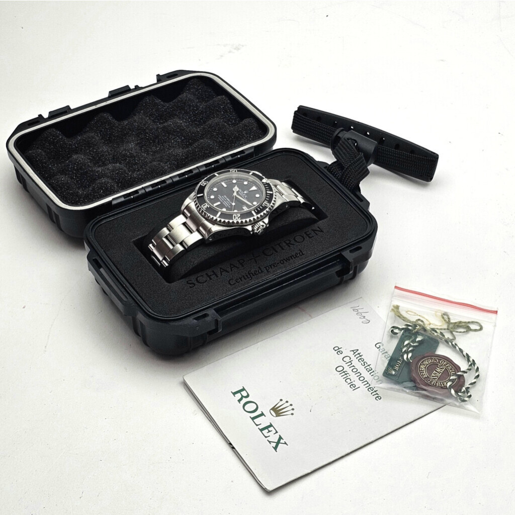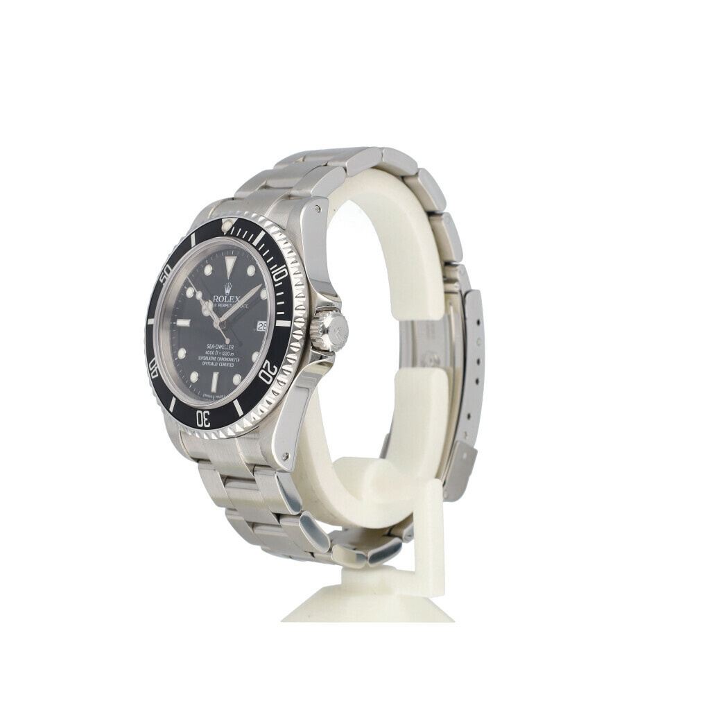 In very good condition Rolex Sea-Dweller 4000 in steel with black dial and steel Oyster bracelet from +/- 2001 (K99... serial, no date filled in on certificate) complete with papers, no box.
