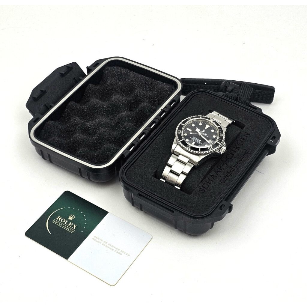 In very good condition unpolished Rolex Sea-Dweller in steel with so called MK II rail dial from +/- 1978 (5721... serial). No box and/or papers. Rolex serviced 1-2026 and not worn since. Rolex service certificate included.