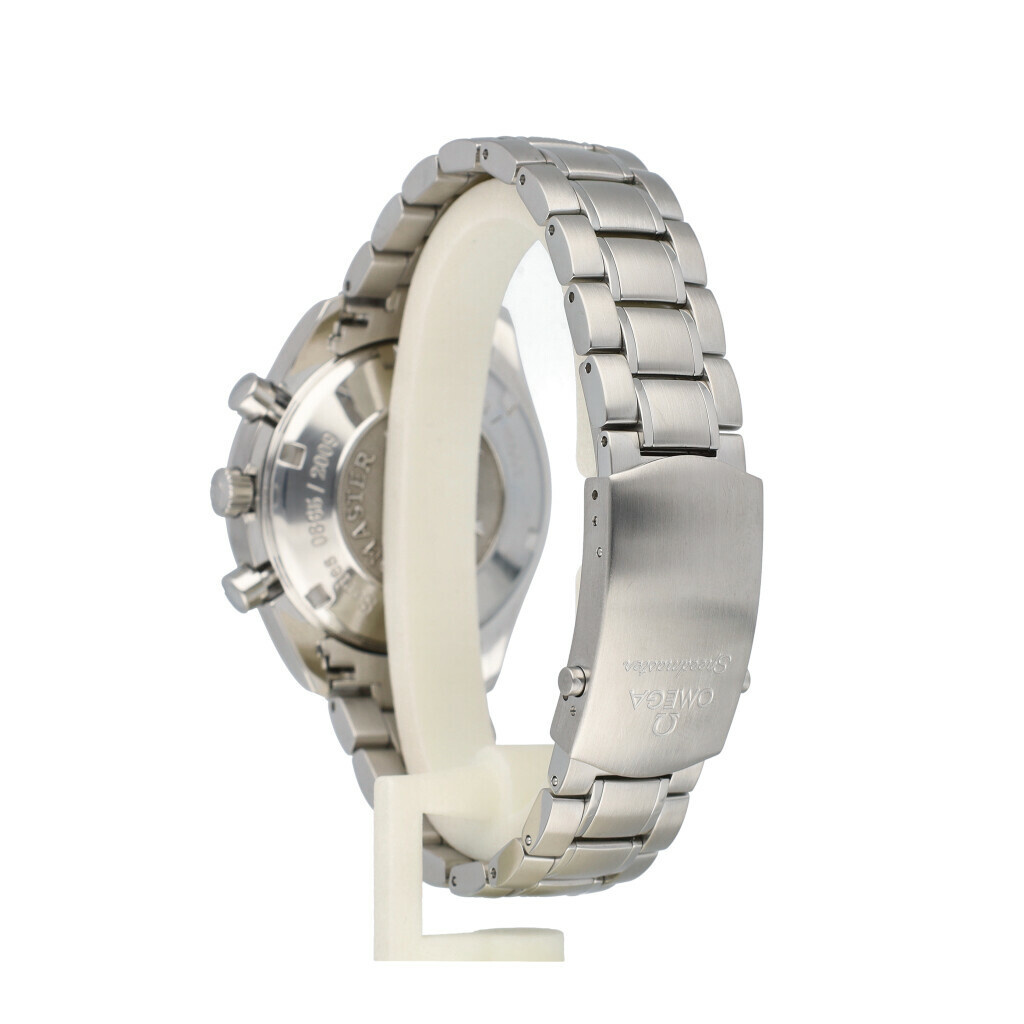 In very good condition Omega Speedmaster Chronograph Date in steel with a white so called "Panda" dial and steel bracelet complete with box and papers. No date filled in on certificate.