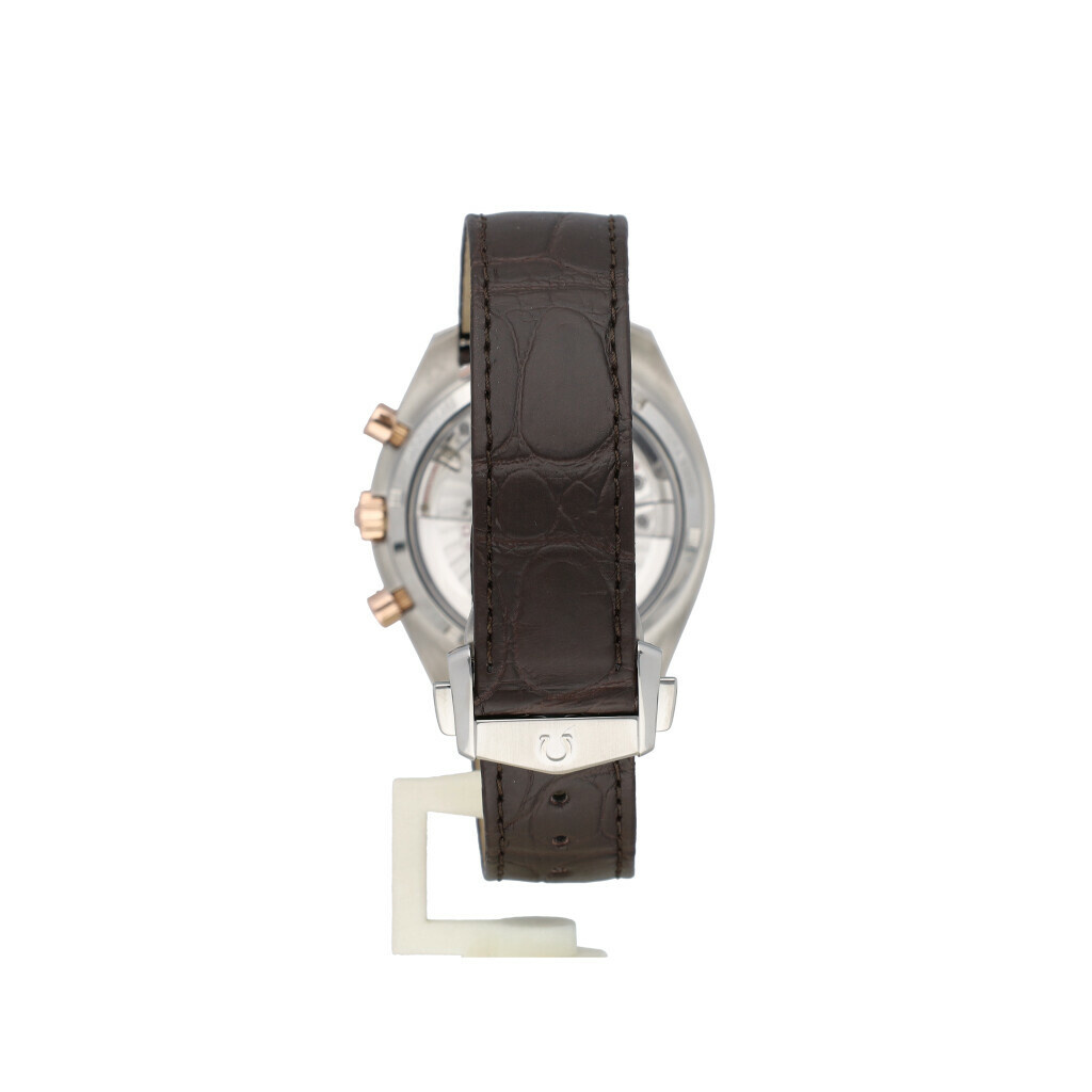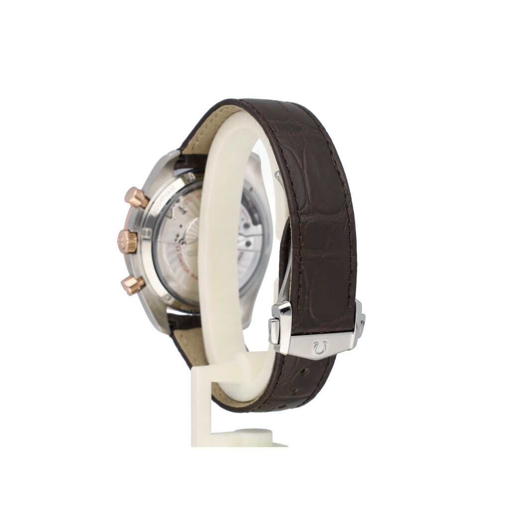 In very good condition in steel rose gold with brown dial with leather strap from 2023 complete with box and papers.