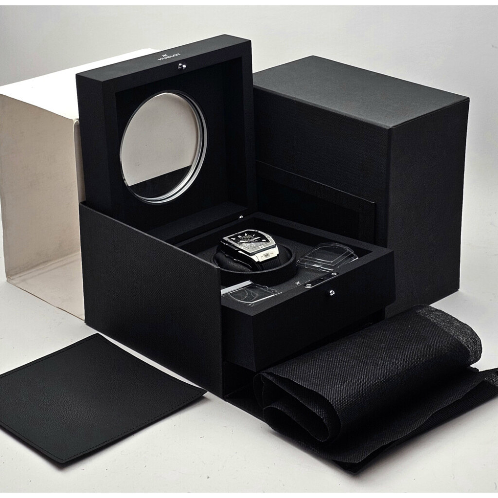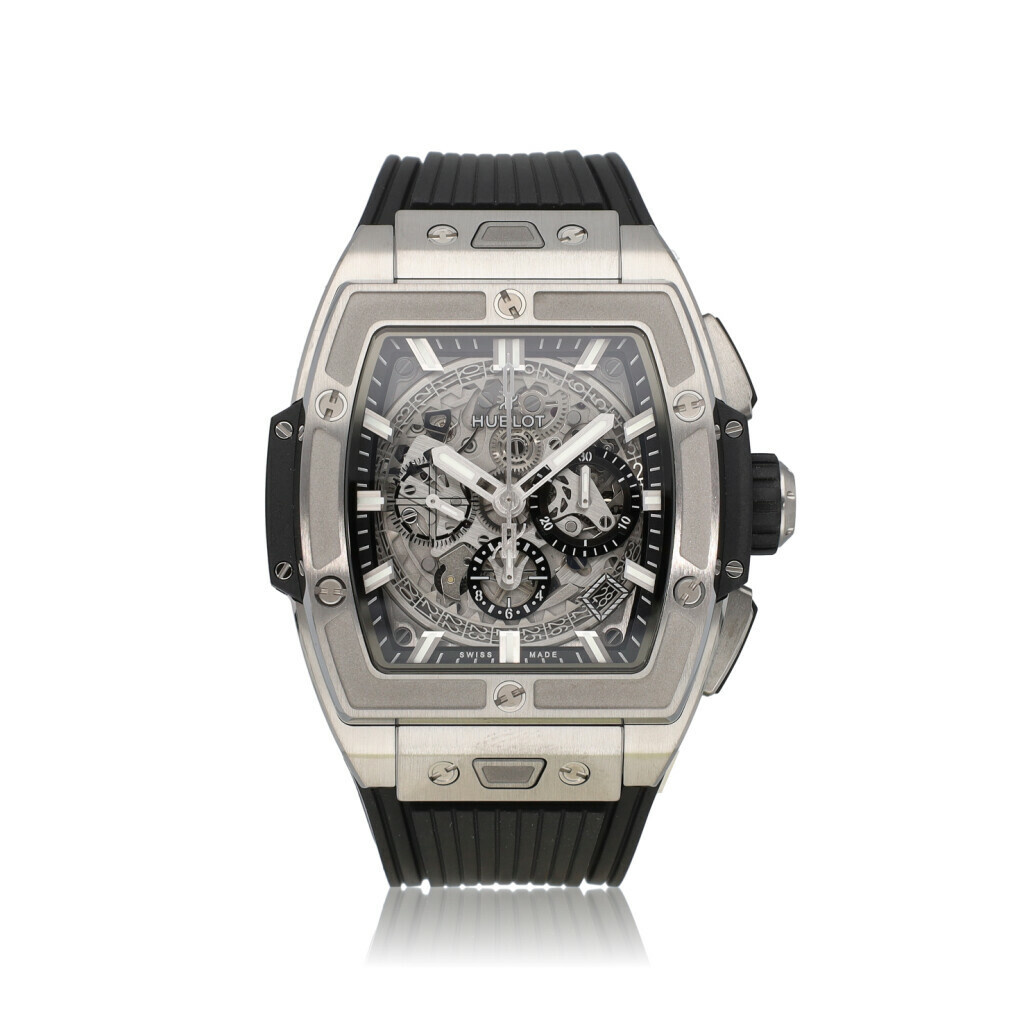 In very good condition Hublot Spirit of Big Bang in Titanium with skeleton dial from 2023 complete box and papers. (ewarranty = certificate for Hublot)