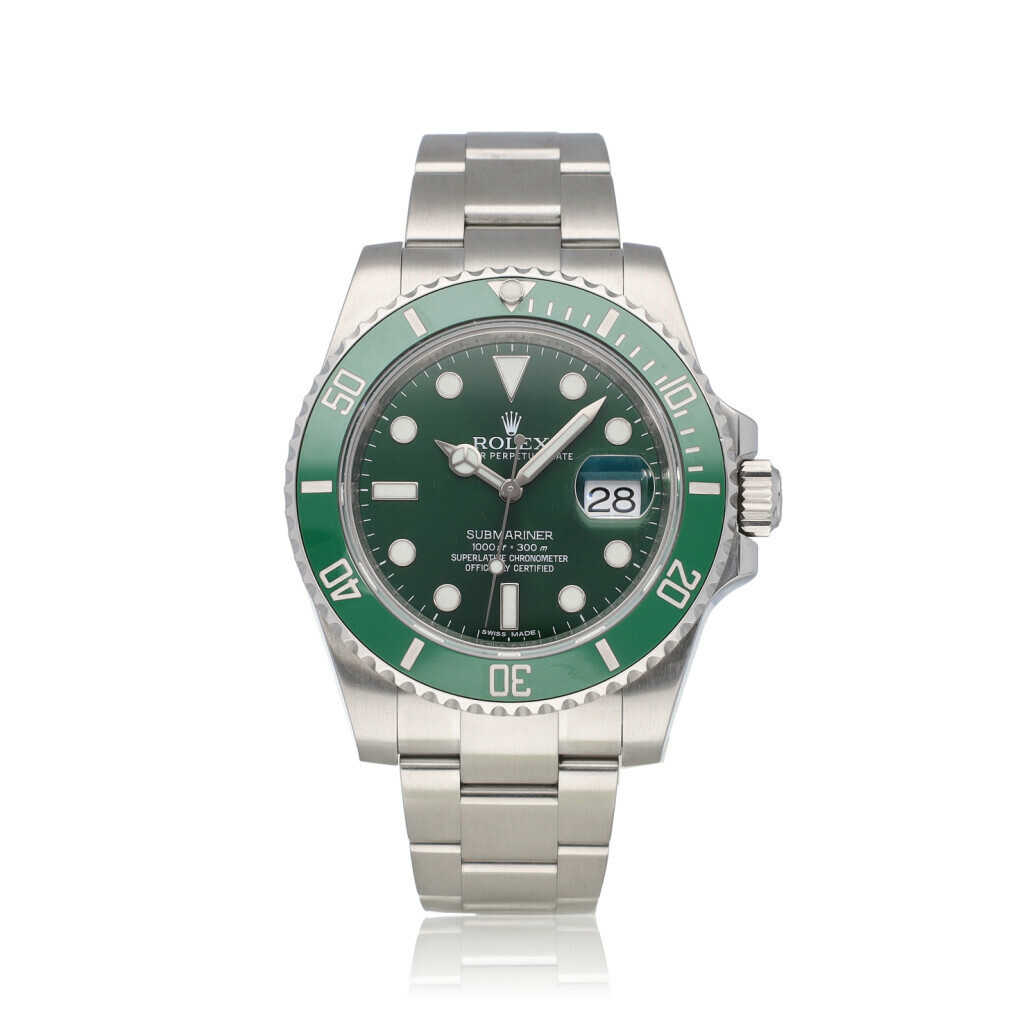 In very good condition Rolex Submariner in steel with green dial so called "Hulk" from 2014 complete with box and papers.